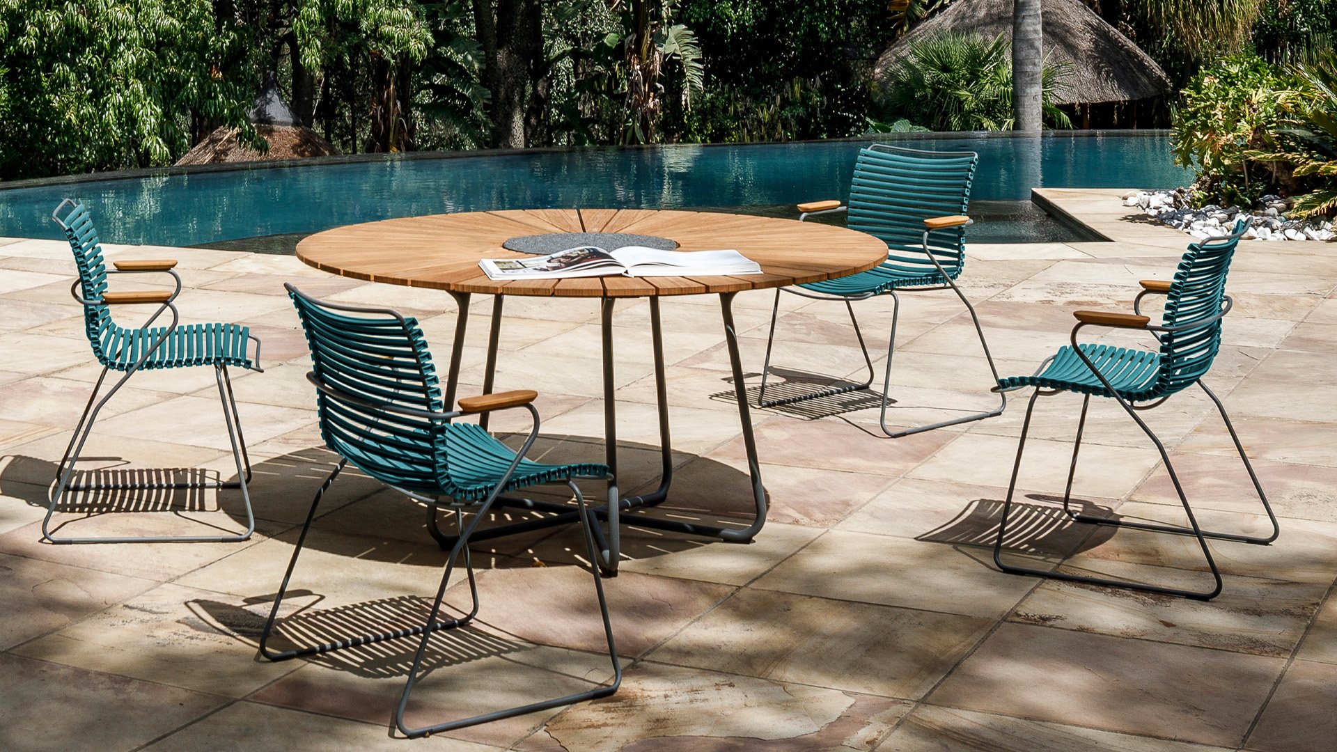 Click Dining ChairThis garden chair is available both with and without armrests, and fully stackable! HOUE CLICK Armchair is simple, honest, and ergonomically designed. This garden chair has a backrest that perfectly molds to every body, the ergonomically shaped back makes the chair very comfortable to use without cushion. Also available with high backrest or as a reclining chair.