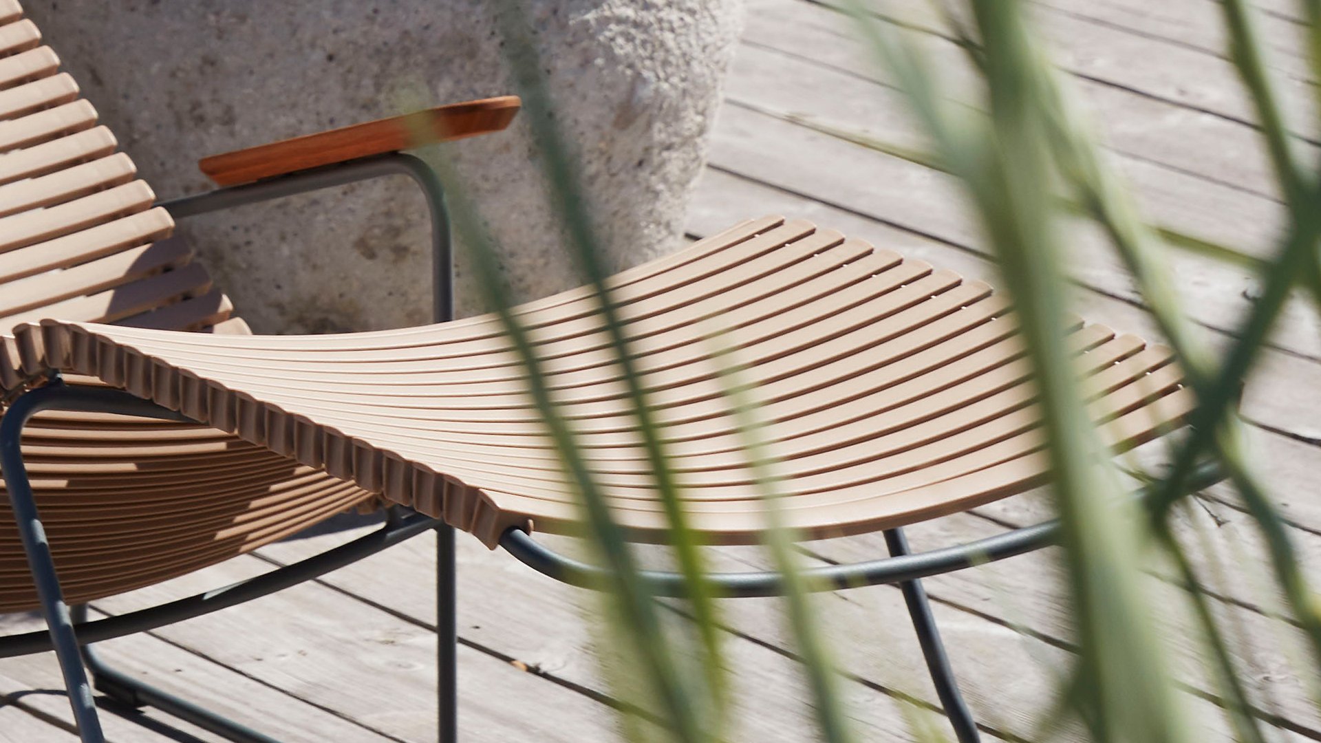 This garden chair is available with or without armrests, and fully stackable! HOUE CLICK Armchair is simple, honest and ergonomically designed. This garden chair has a backrest that perfectly shapes to every body, the ergonomically shaped back makes the chair very comfortable to use without a cushion. Also Available with a high backrest or as an adjustable chair.