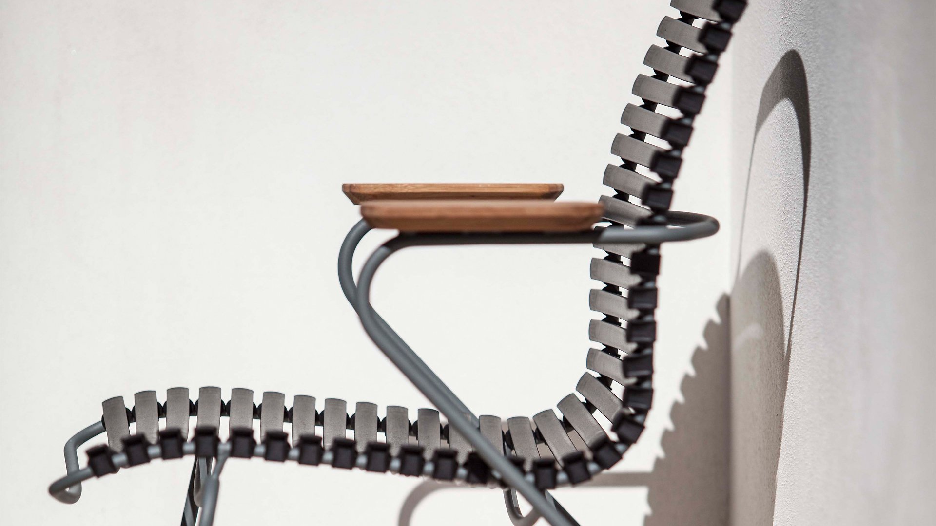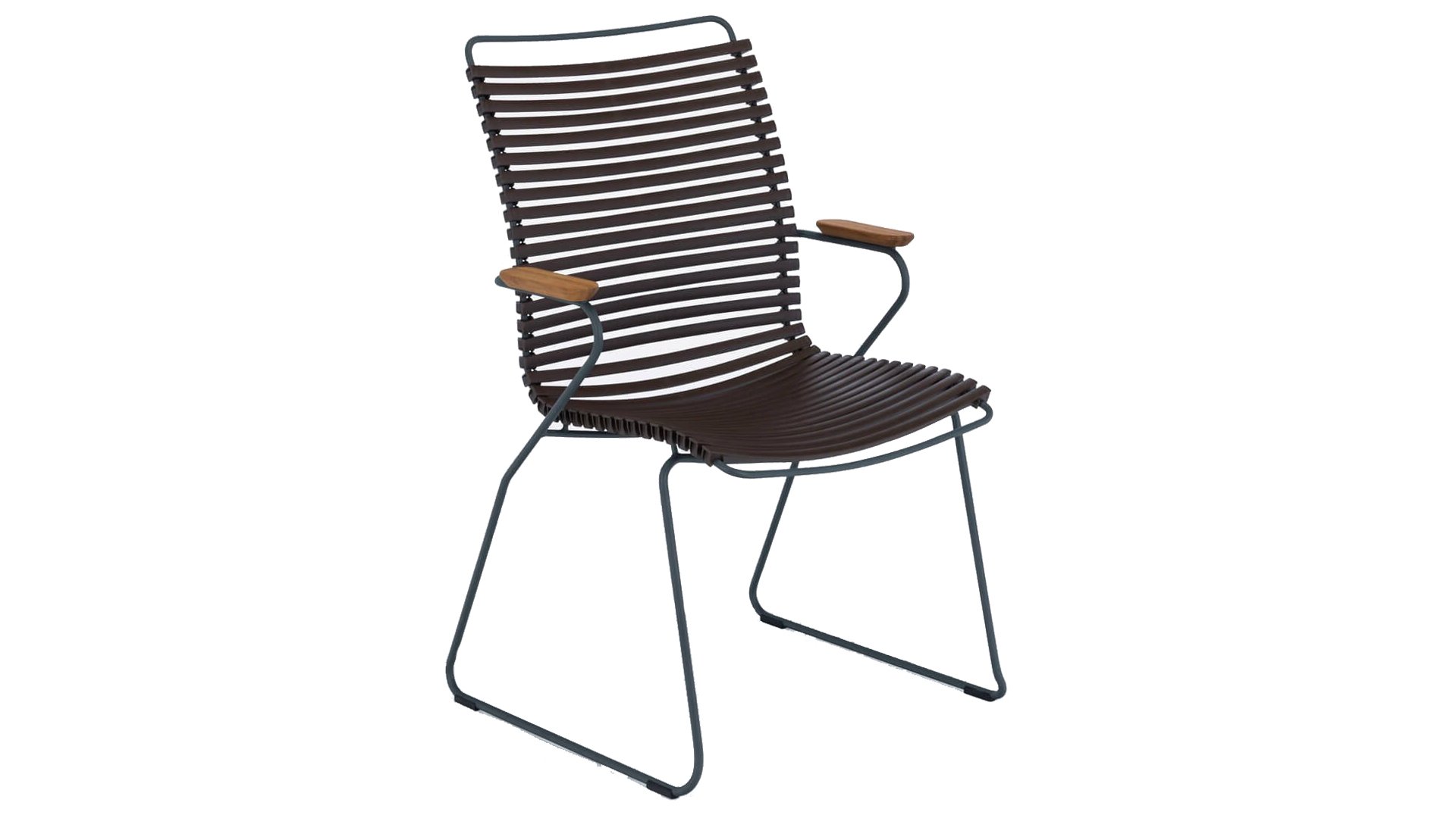 This garden chair is fully stackable! HOUE CLICK Armchair is simple, honest, and ergonomically thought out. This garden chair has a -higher- backrest that perfectly conforms to every body, the ergonomically shaped back makes the chair very comfortable to use without a cushion. Also available with a low back (with or without armrests) or an adjustable one.
