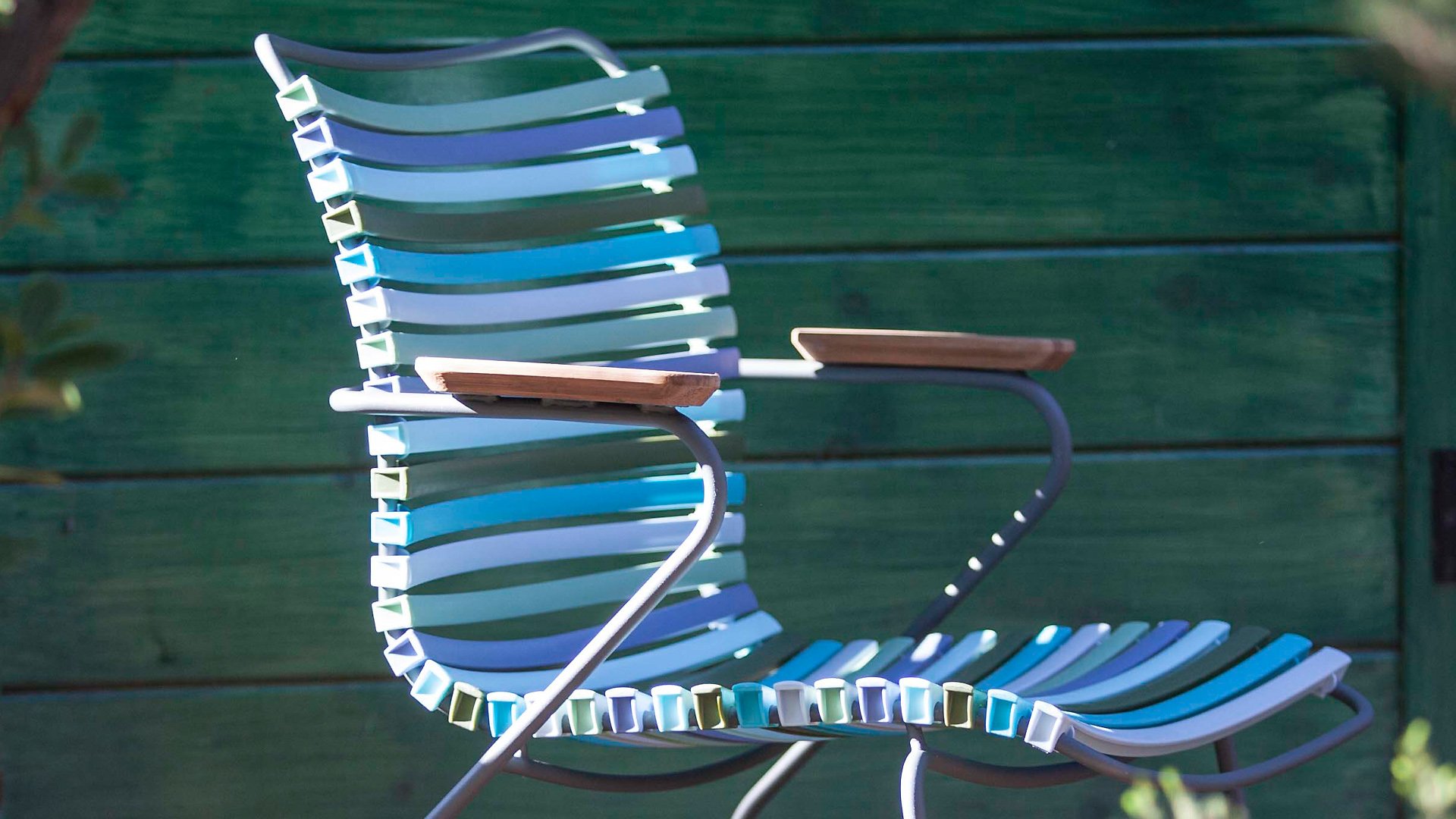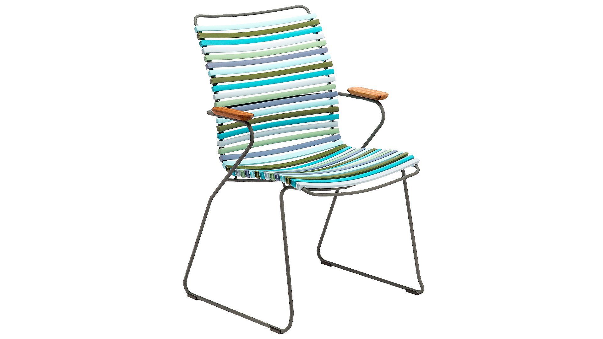 This garden chair is fully stackable! HOUE CLICK Armchair is simple, honest, and ergonomically thought out. This garden chair has a -higher- backrest that perfectly conforms to every body, the ergonomically shaped back makes the chair very comfortable to use without a cushion. Also available with a low back (with or without armrests) or an adjustable one.