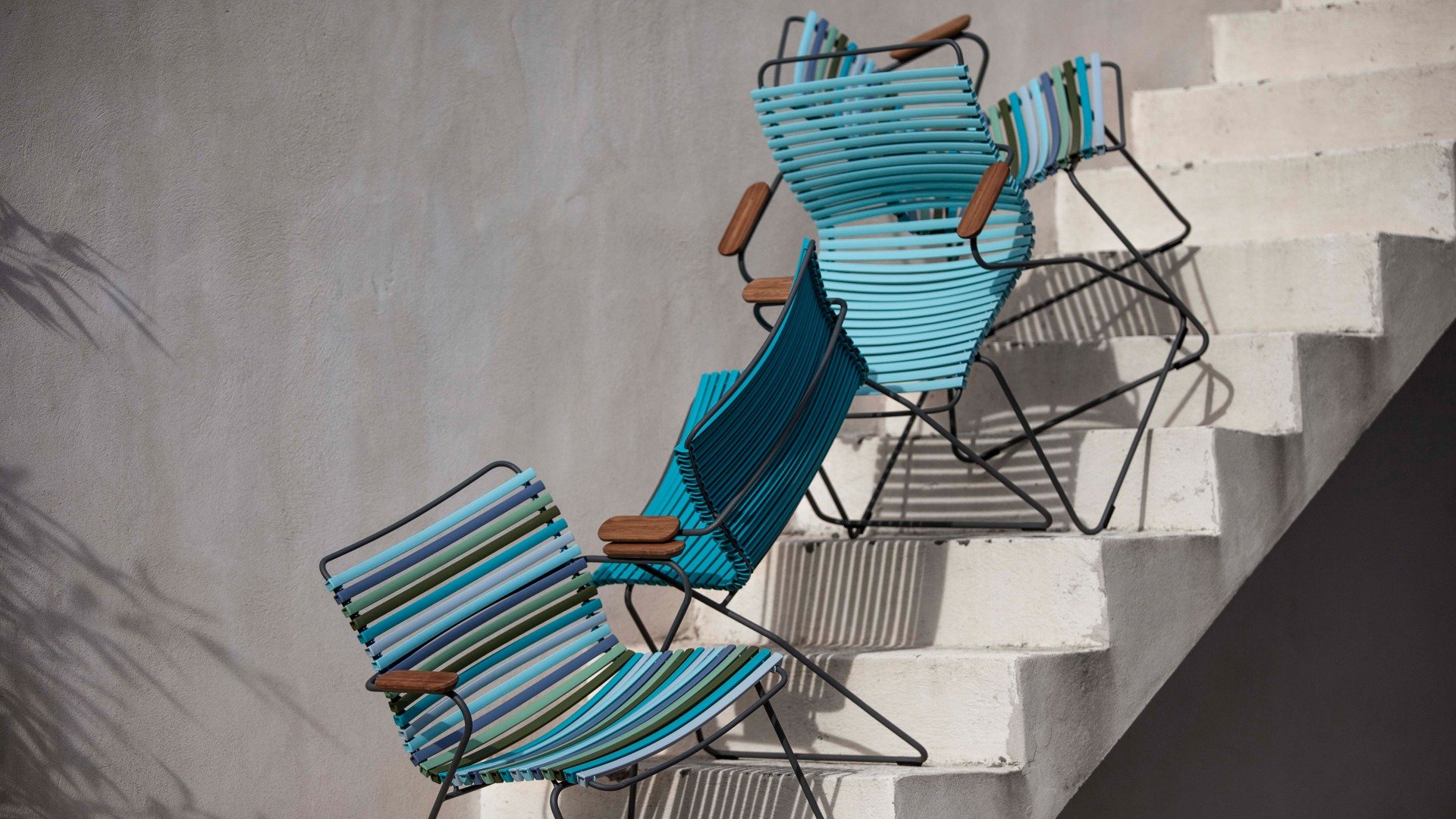 This garden chair is fully stackable! HOUE CLICK Armchair is simple, honest, and ergonomically thought out. This garden chair has a -higher- backrest that perfectly conforms to every body, the ergonomically shaped back makes the chair very comfortable to use without a cushion. Also available with a low back (with or without armrests) or an adjustable one.