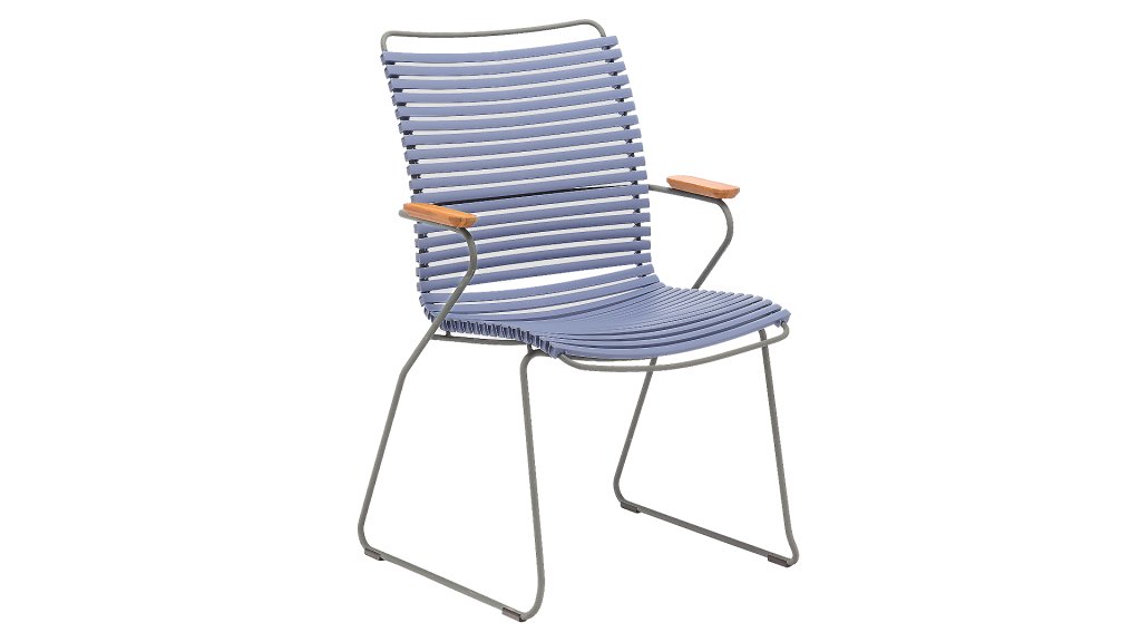 This garden chair is fully stackable! HOUE CLICK Armchair is simple, honest, and ergonomically thought out. This garden chair has a -higher- backrest that perfectly conforms to every body, the ergonomically shaped back makes the chair very comfortable to use without a cushion. Also available with a low back (with or without armrests) or an adjustable one.