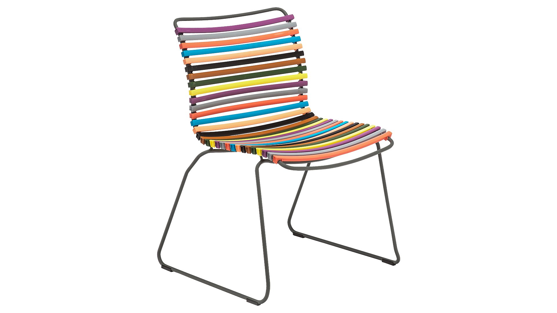 This garden chair is available with or without armrests, and is fully stackable! HOUE CLICK Armchair is simple, honest, and ergonomically designed. This garden chair features a backrest that perfectly adapts to any body, the ergonomically shaped back makes the chair very comfortable to use without a cushion. Also available with a high backrest or as an adjustable chair.