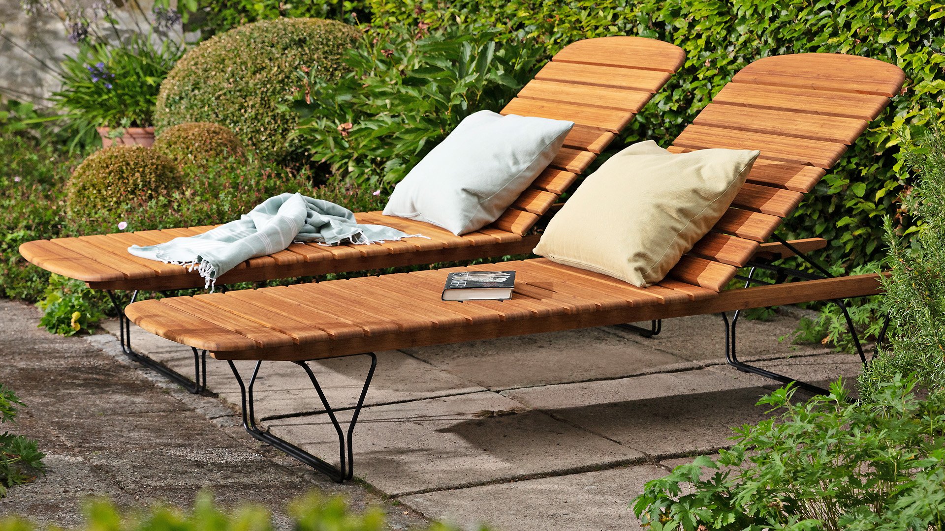 The sunbed lounge chair is made of bamboo and has metal legs with a black powder coating. The backrest of the Molo sunbed lounge chair is adjustable in five different positions, allowing you to sit or lie down. The designer is Henrik Pedersen. Tip: apply oil to the bamboo 3 to 4 times a year to keep it in the best condition. The garden furniture is specially made for anyone who likes to give their interior and furniture a new look from time to time.