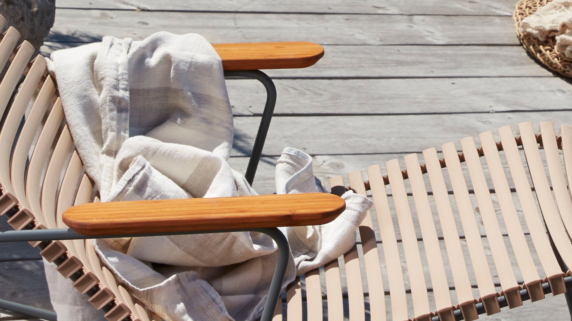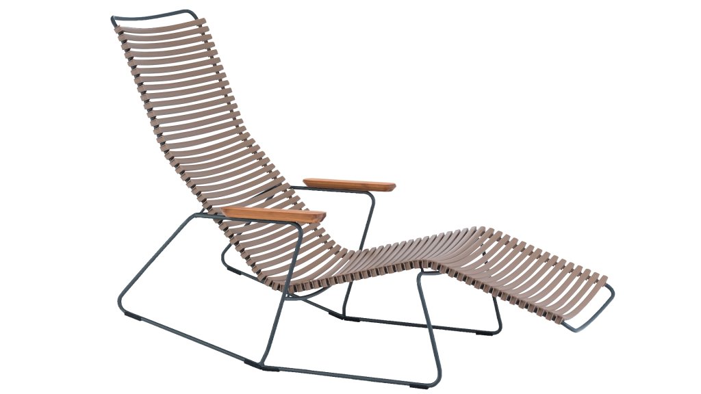 The HOUE Click Sunrockers collection is characterized by its elegant design combined with practical usability. The ergonomic shape combined with the plastic slats ensures that this chair is comfortable to sit on without cushions. The bamboo armrest provides a nice contrast and a natural shade. Enjoy the delightful HOUE Sunrocker lounger that can tilt into both a lying and sitting position, perfect for sunbathing!