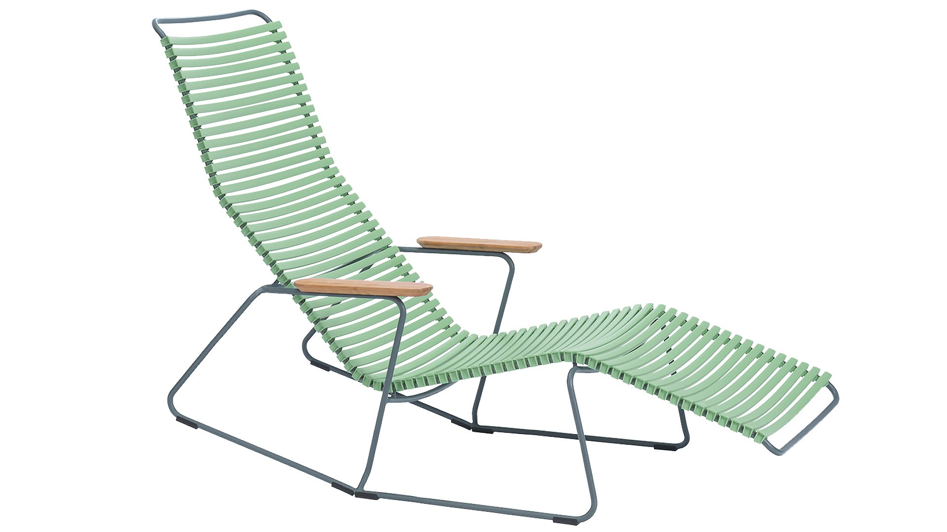 The HOUE Click Sunrockers collection is characterized by its elegant design combined with practical usability. The ergonomic shape combined with the plastic slats ensures that this chair is comfortably usable without a cushion. The bamboo armrest provides a nice contrast and a natural touch. Enjoy the delightful HOUE Sunrocker lounge chair that can be tilted to both a reclining and sitting position, perfect for sunbathing!
