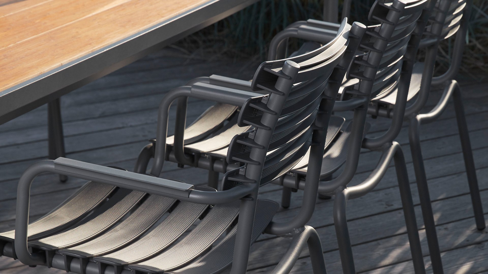 Powder-coated steel is very easy to maintain and extremely durable. These practical pieces of furniture are easy to clean. Our steel, with its sturdy powder coating, is weather-resistant and resistant to UV rays. Powder-coated steel is rust-resistant, timeless, and stylish.