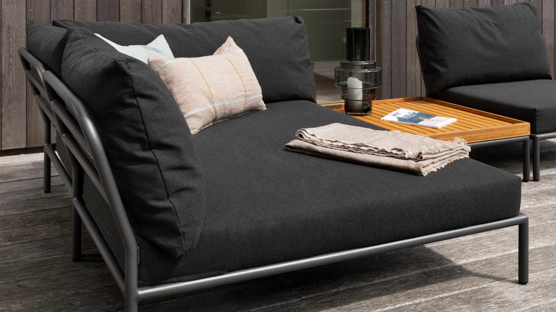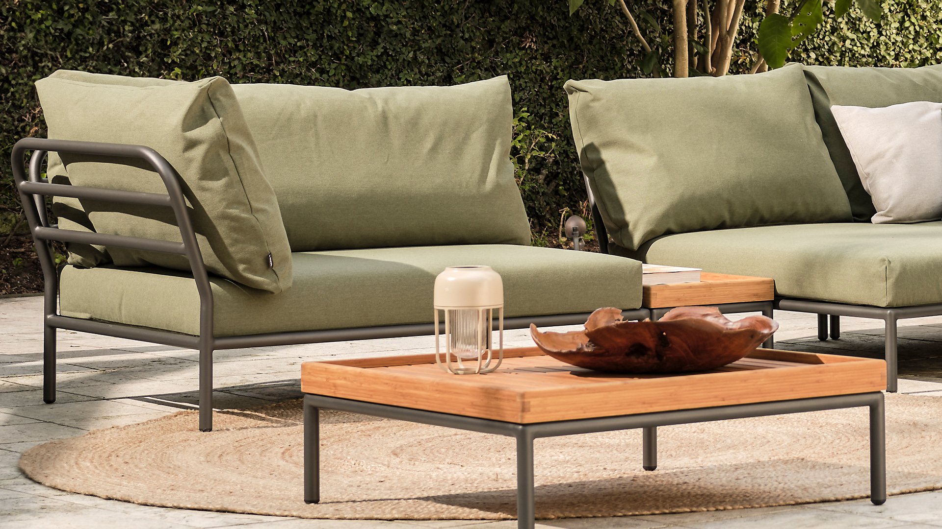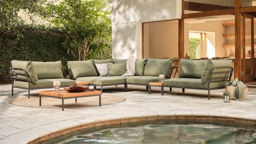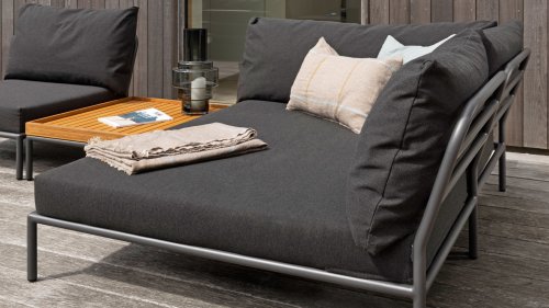 The Houe Level 2 Lounge series has a new design and softer back cushion filling for a more relaxed lounge experience, also designed by Henrik Pedersen. It's all about level, about coming face to face with nature, relating to the horizon, and taking lines and shapes to a higher level! The lightweight frame and soft cushions create both contrast and comfort - enticing a relaxed lounge atmosphere. HOUE LEVEL is a lounge series consisting of 2 sofa modules - a left and a right - a single chair, an ottoman, a Cozy Corner and a Chaise Longue, a coffee table, and a side table, allowing the modules to be combined in many different ways. The Alpine green and Ash light gray/ecru colored cushions are made with Sunbrella Heritage fabric, which contains 50% recycled acrylic. Colorful fiber ends from the recycling process of the primary material may appear in the fabric, causing the fabric color to vary from batch to batch. This creates a unique fabric with a natural appearance and vintage charm. The fabric is Oeko-tex certified, water-repellent, stain-resistant, and easy to maintain. Neatly fitting covers are available for each Houe Level component! The different elements of this collection can be combined in different ways, resulting in a high-quality lounge area on your terrace. The sofa module is made of powder-coated aluminum and has cushions made of water-repellent, dark gray material. This spacious, soft lounge set calls for sun, books, and a drink. And the biggest plus? You can also lie comfortably with two people because there are cushions attached to the armrests. So choose your favorite side, and the enjoyment can begin. Houe Level Lounge is a modular (self-assembled) outdoor lounge combination. The Level lounge consists of different elements, making many combinations possible. The lounge frame is made of aluminum and has an excellent powder coating. The cushions in the lounge feature a special outdoor fabric with a Quickdry foam base. This allows the cushions to dry quickly and prevents mold. The fabrics are easy to clean with a mild detergent. The cushions can be unzipped and washed at 30 degrees. *Also available in the colors Alpine, Ash, Dark Grey. If you would like the set in a different composition than indicated, please request a price quote!Designer: Henrik Pedersen "Does design really matter? Maybe not, but for me, it is essential. It gives me a kick to design shapes and functions that can passionately move people and open up new possibilities. Passion for design is in my head, soul, and heart, wherever I go. And my main source of inspiration is neo-Scandinavian design, influenced by the atmosphere of London and the humor of Amsterdam, often with fusion elements, resulting in combining materials and functions in new and original ways, while always striving for a pure and simple look."