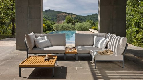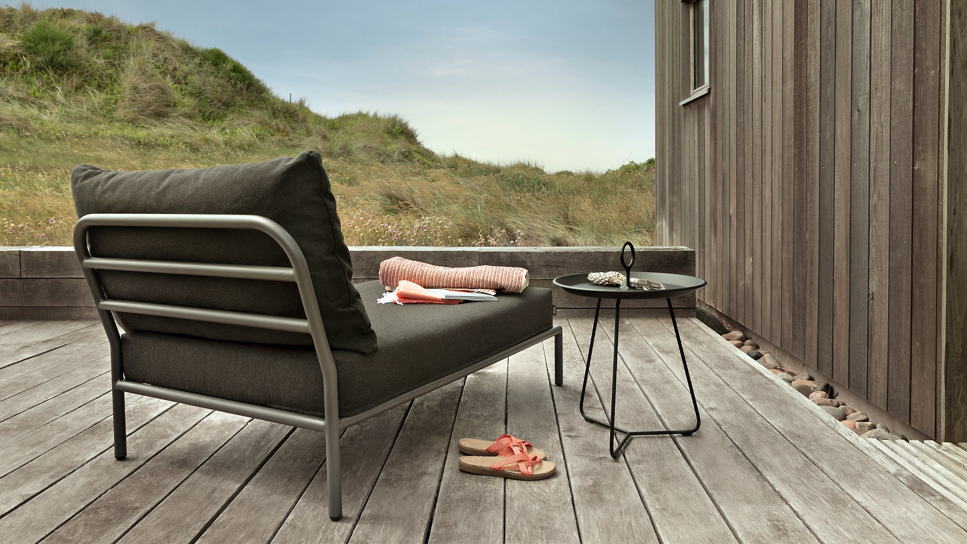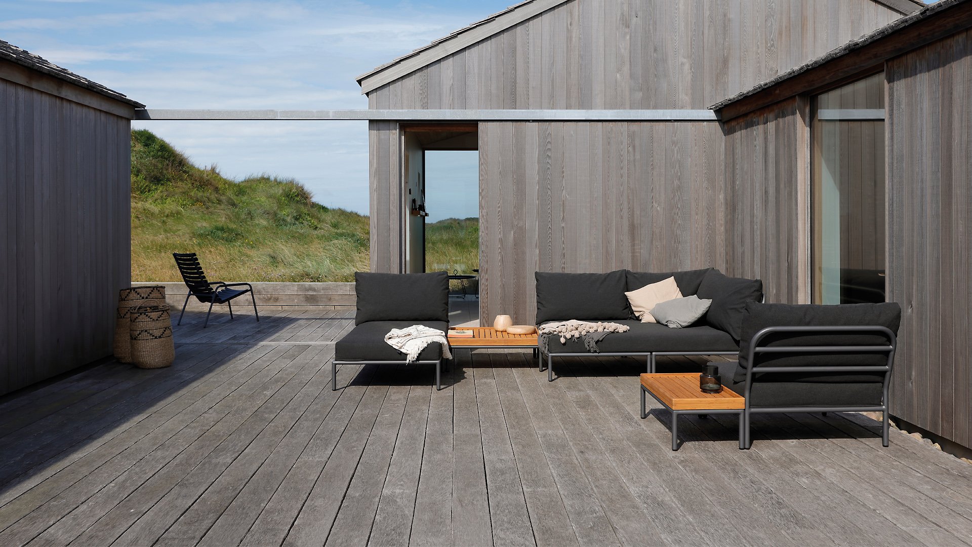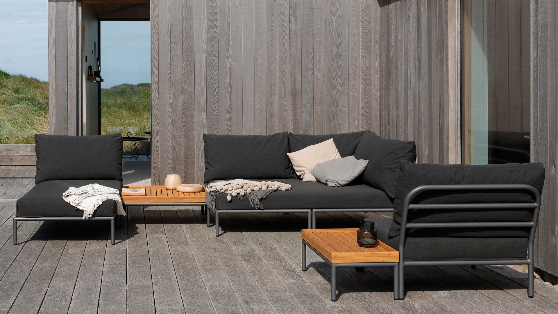 The Houe Level 2 Lounge series has a new design and softer back cushion filling for a more relaxed lounge experience, also designed by Henrik Pedersen. It's all about level, about coming face to face with nature, relating to the horizon, and taking lines and shapes to a higher level! The lightweight frame and soft cushions create both contrast and comfort - enticing a relaxed lounge atmosphere. HOUE LEVEL is a lounge series consisting of 2 sofa modules - a left and a right - a single chair, an ottoman, a Cozy Corner and a Chaise Longue, a coffee table, and a side table, allowing the modules to be combined in many different ways. The Alpine green and Ash light gray/ecru colored cushions are made with Sunbrella Heritage fabric, which contains 50% recycled acrylic. Colorful fiber ends from the recycling process of the primary material may appear in the fabric, causing the fabric color to vary from batch to batch. This creates a unique fabric with a natural appearance and vintage charm. The fabric is Oeko-tex certified, water-repellent, stain-resistant, and easy to maintain. Neatly fitting covers are available for each Houe Level component! The different elements of this collection can be combined in different ways, resulting in a high-quality lounge area on your terrace. The sofa module is made of powder-coated aluminum and has cushions made of water-repellent, dark gray material. This spacious, soft lounge set calls for sun, books, and a drink. And the biggest plus? You can also lie comfortably with two people because there are cushions attached to the armrests. So choose your favorite side, and the enjoyment can begin. Houe Level Lounge is a modular (self-assembled) outdoor lounge combination. The Level lounge consists of different elements, making many combinations possible. The lounge frame is made of aluminum and has an excellent powder coating. The cushions in the lounge feature a special outdoor fabric with a Quickdry foam base. This allows the cushions to dry quickly and prevents mold. The fabrics are easy to clean with a mild detergent. The cushions can be unzipped and washed at 30 degrees. *Also available in the colors Alpine, Ash, Dark Grey. If you would like the set in a different composition than indicated, please request a price quote!Designer: Henrik Pedersen "Does design really matter? Maybe not, but for me, it is essential. It gives me a kick to design shapes and functions that can passionately move people and open up new possibilities. Passion for design is in my head, soul, and heart, wherever I go. And my main source of inspiration is neo-Scandinavian design, influenced by the atmosphere of London and the humor of Amsterdam, often with fusion elements, resulting in combining materials and functions in new and original ways, while always striving for a pure and simple look."