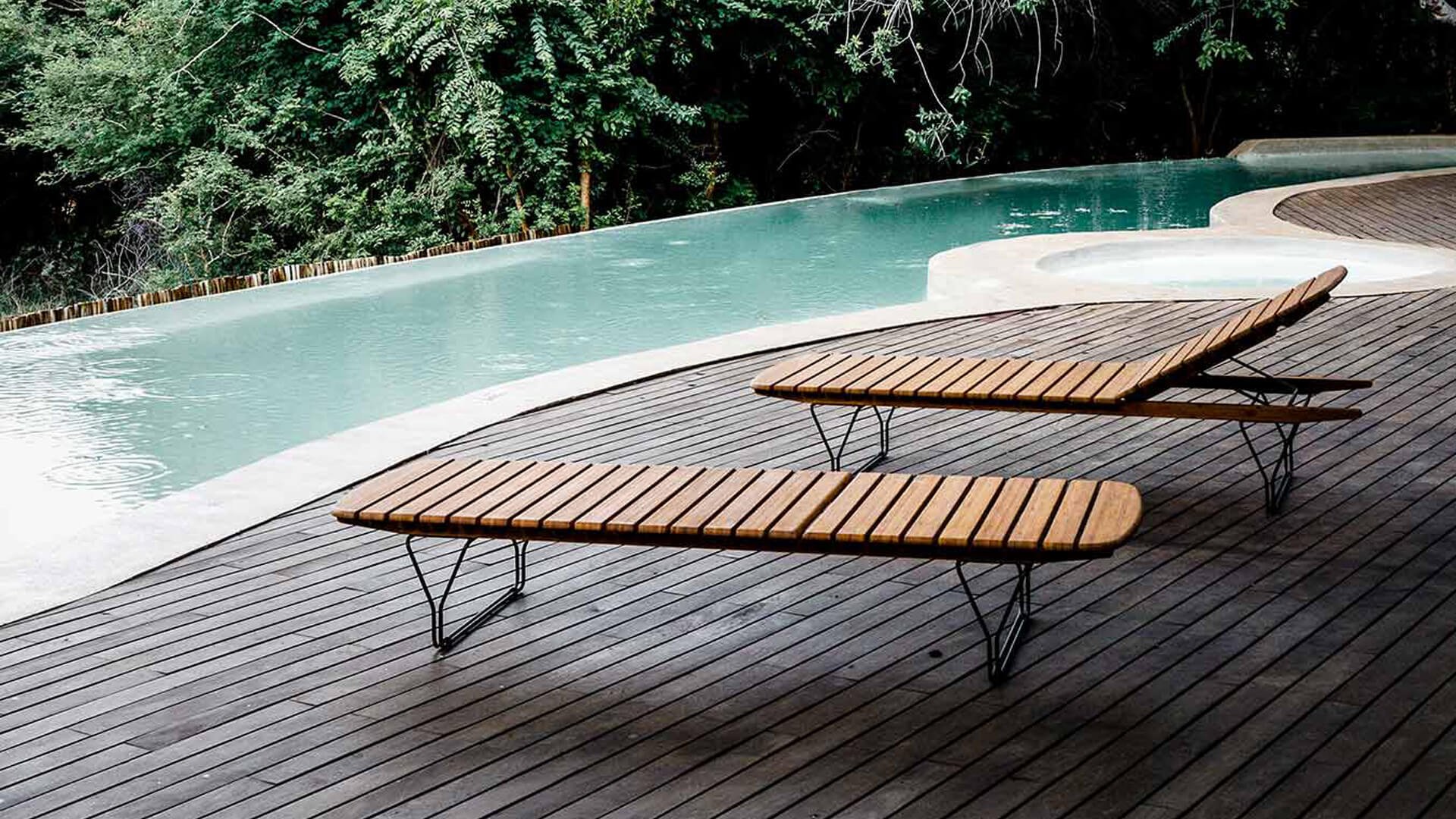 The HOUE Molo is a gem of a sunbed. The sleek design looks great in any garden. The sunbed is made of bamboo, with a black powder-coated steel frame. Combined with the quality Sunbrella cushions, this is a top product. The sunbed is also available with wheels, and the cushions come in 3 colors. Check out all the options!