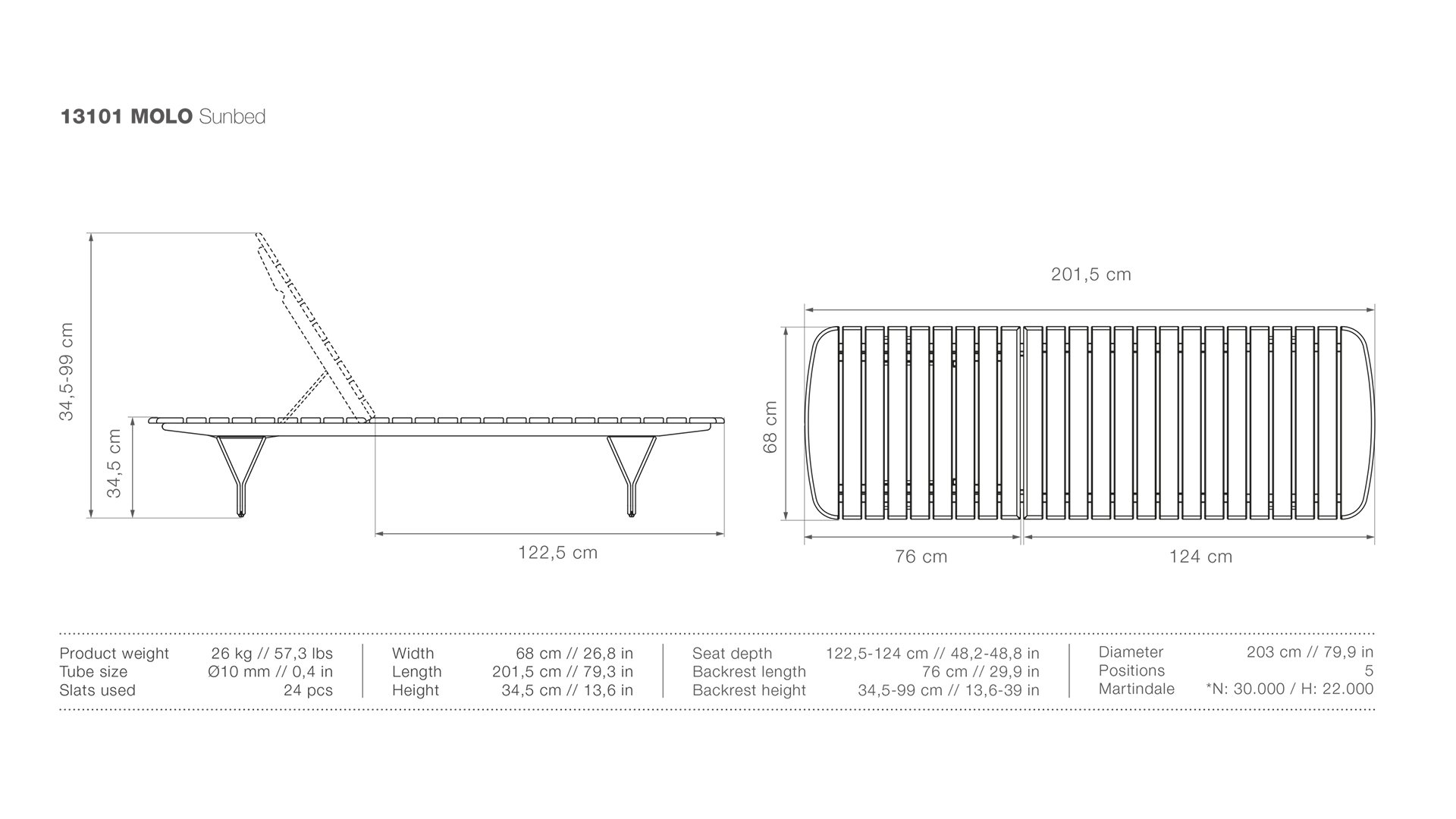 | Length | ± 201cm |