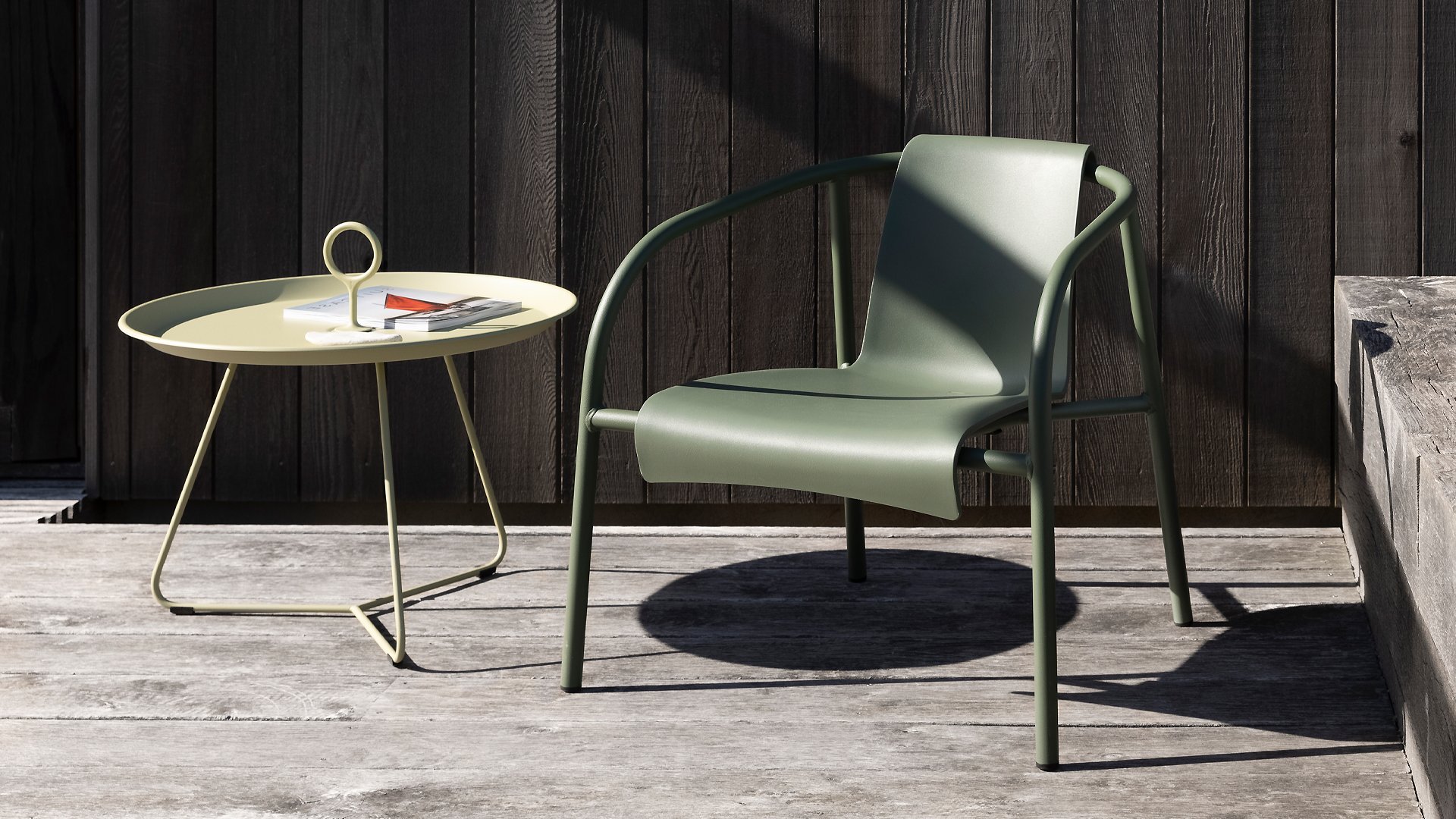 The design of the HOUE NAMI is based on the forces and lines of nature and finds its natural place outside in all weather. The NAMI chair consists of a powder-coated steel frame with a beautifully molded plastic shell. The chair is made in Denmark and contains 97% Danish household plastic waste and 3% color pigment!