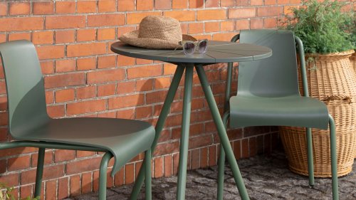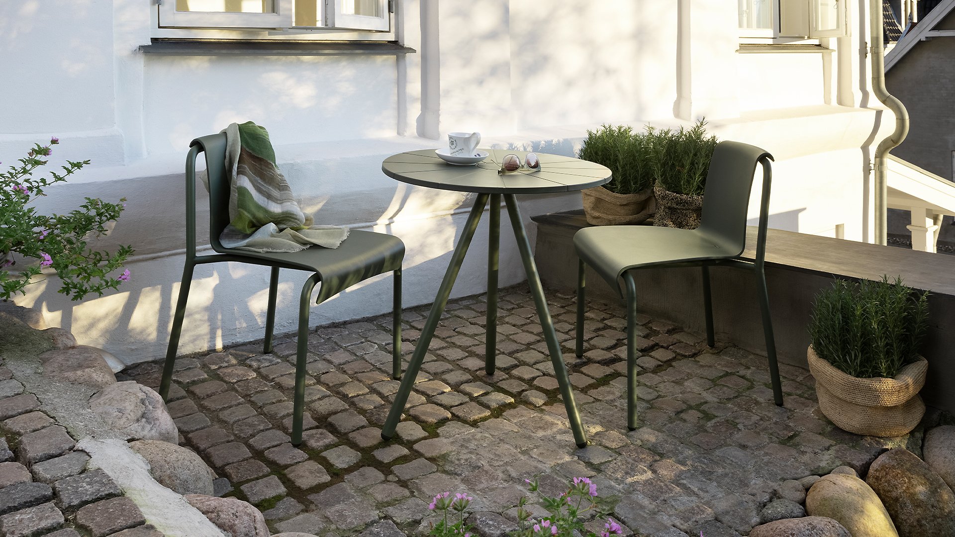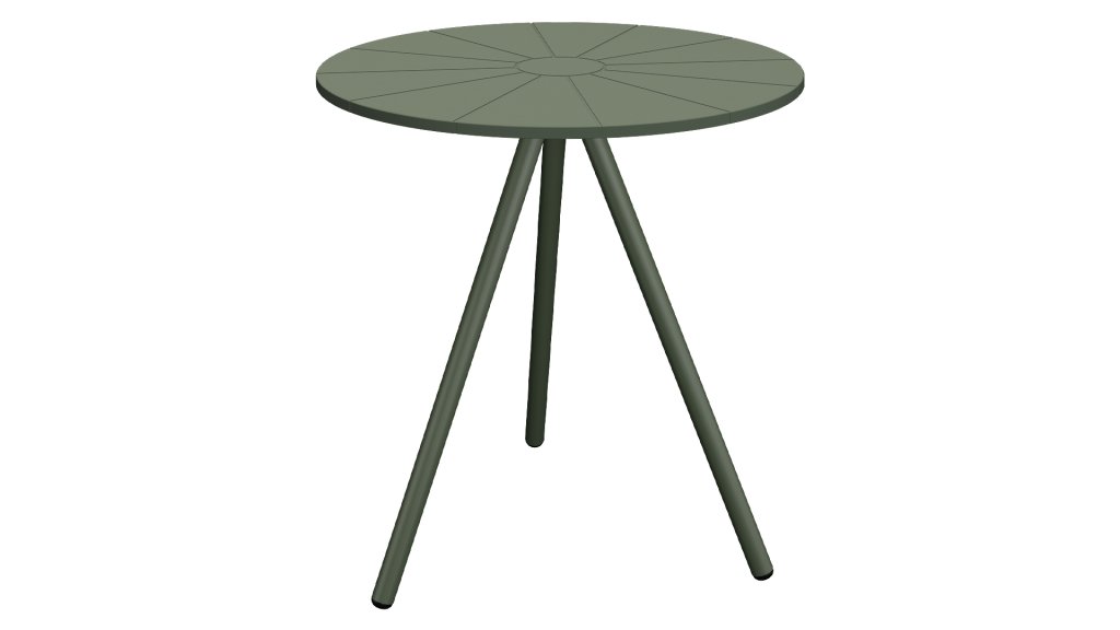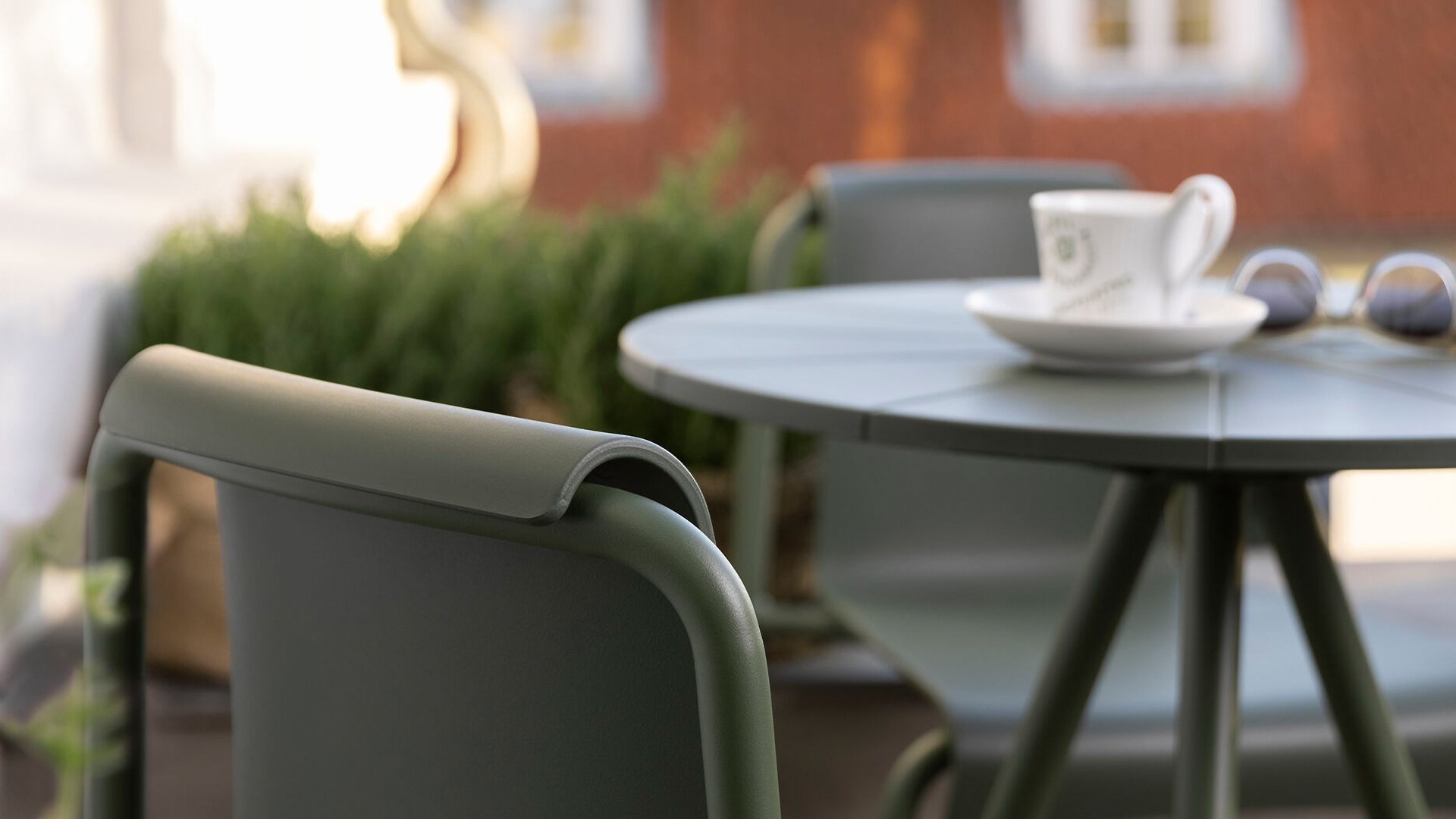 The NAMI table consists of a powder-coated steel frame with a beautifully molded plastic tabletop. The tabletop is made in Denmark and contains 97% Danish household plastic waste and 3% color pigment. The NAMI table is available in 2 colors: black and green, with the frame and bowl in the same color.