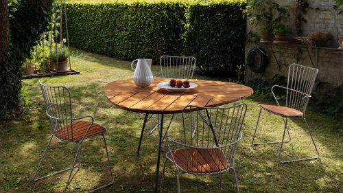 HOUE Paon dining collection: A seating comfort you wouldn't expect from a metal chair! Available in paon dining chair as well as a bar stool! Bring France to your backyard! The powder-coated steel is maintenance-free. The chair is stackable.