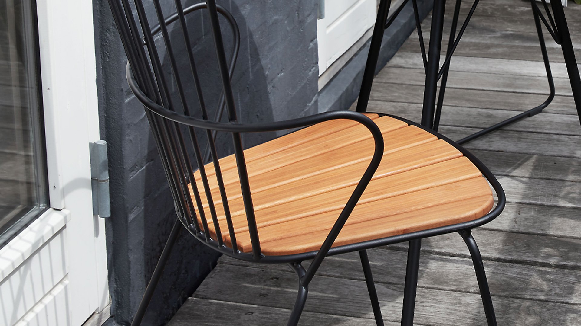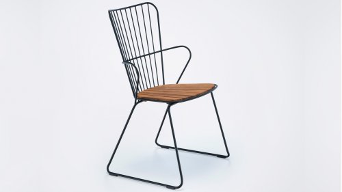 PAON is light Scandinavian in its design but with a touch of French Victorian romance. The PAON line consists of a dining chair, lounge chair, rocking chair, a two-seater bench, and a bar stool. Made of powder-coated steel with bamboo slats. The PAON chair offers a seating comfort that you would not expect from a metal chair! PAON Dining Chairs are stackable. Cushions are available in carbon gray.