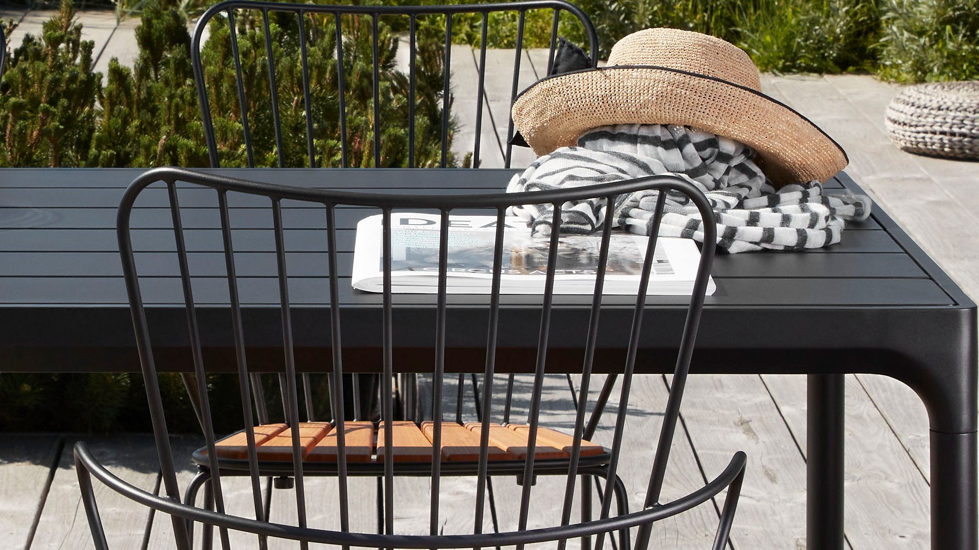 Aluminum is very low-maintenance and lightweight. These practical pieces of furniture are easy to clean. Our aluminum, finished with a durable powder coating, is weather-resistant and resistant to UV radiation. Aluminum does not rust and is timeless and stylish.