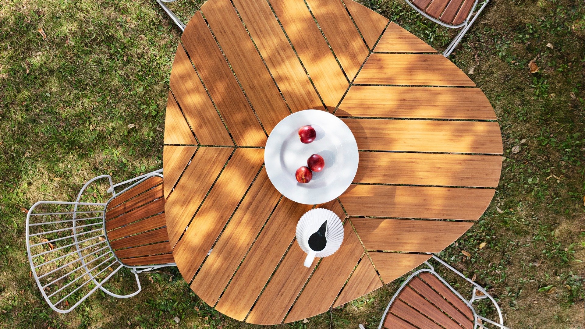 Weathering of exposed bamboo occurs due to the interaction of various climate conditions, such as fluctuations in temperature and relative humidity. Repeated drying and moistening of exposed bamboo leads to tiny cracks in the surface. UV rays contribute to the breakdown of the cellulose layer. Finally, wind and dust particles have a sandblasting effect on the bamboo surface. The combination of all these factors causes bamboo to weather. This reduces its durability. To enjoy your bamboo garden furniture for a long time, it is important to treat the bamboo twice a year with bamboo oil to protect it from weather conditions.