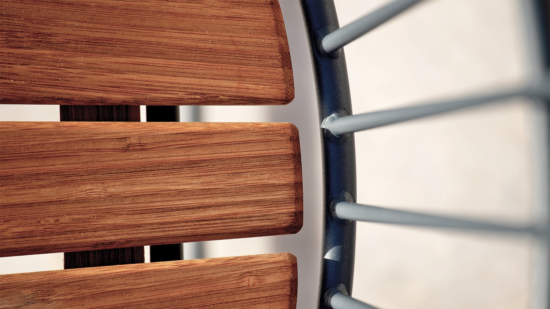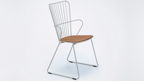PAON is light Scandinavian in its design but with a touch of French Victorian romance. The PAON line consists of a dining chair, lounge chair, rocking chair, a two-seater bench, and a bar stool. Made of powder-coated steel with bamboo slats. The PAON chair offers a seating comfort that you would not expect from a metal chair! PAON Dining Chairs are stackable. Cushions are available in carbon gray.