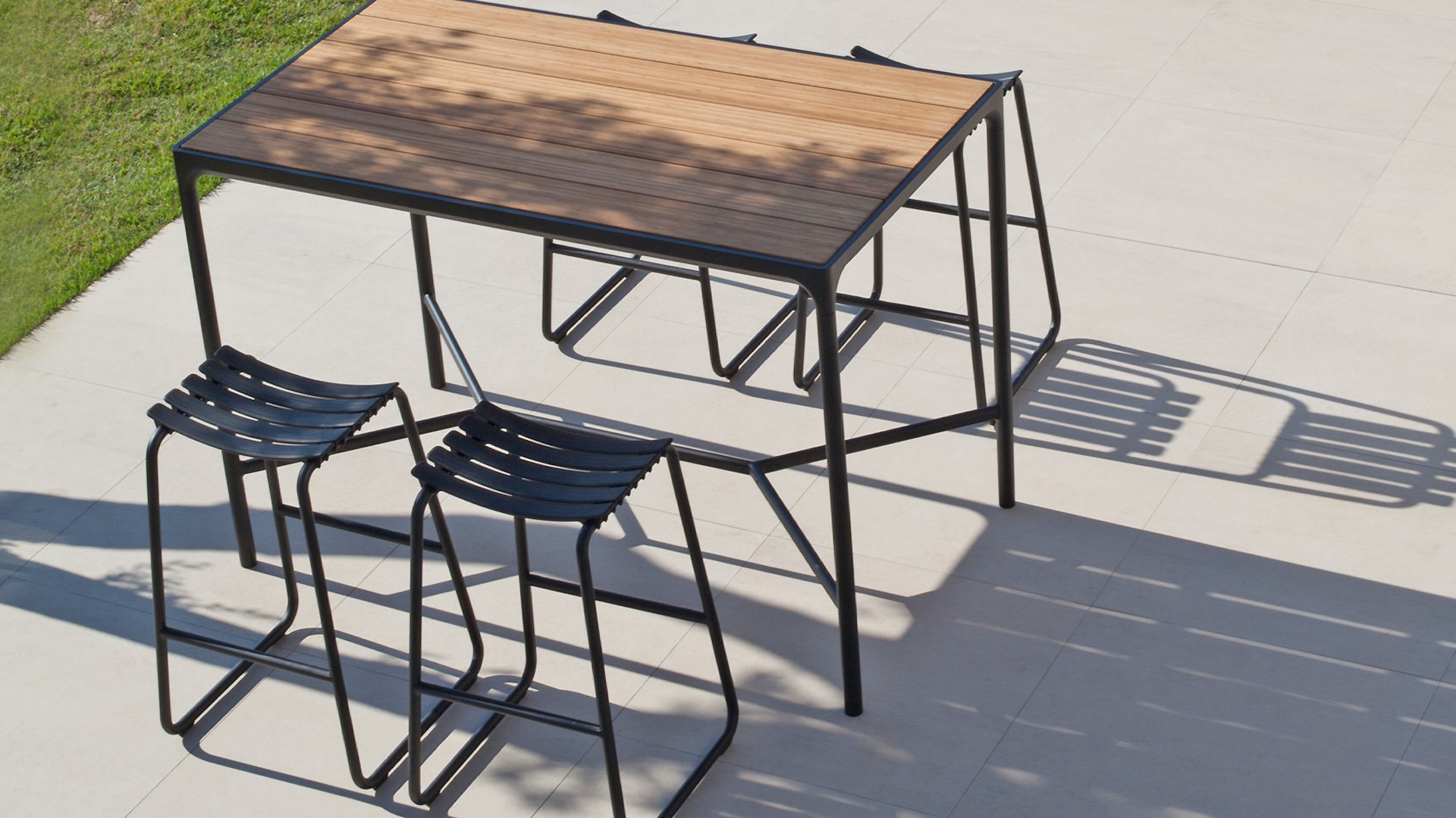 The Houe Four bar table is a robust model that fits well in an industrial interior or a rugged interior. The table is designed to withstand weather conditions. The Four table has a strong aluminum frame available in powder-coated black. The aluminum tabletop has a structure that is very suitable for outdoor use. The table comes in dimensions with a length of 90, 160, 210 and 270cm and all have a width of 90cm and a height of 74cm (bar table 111cm high).