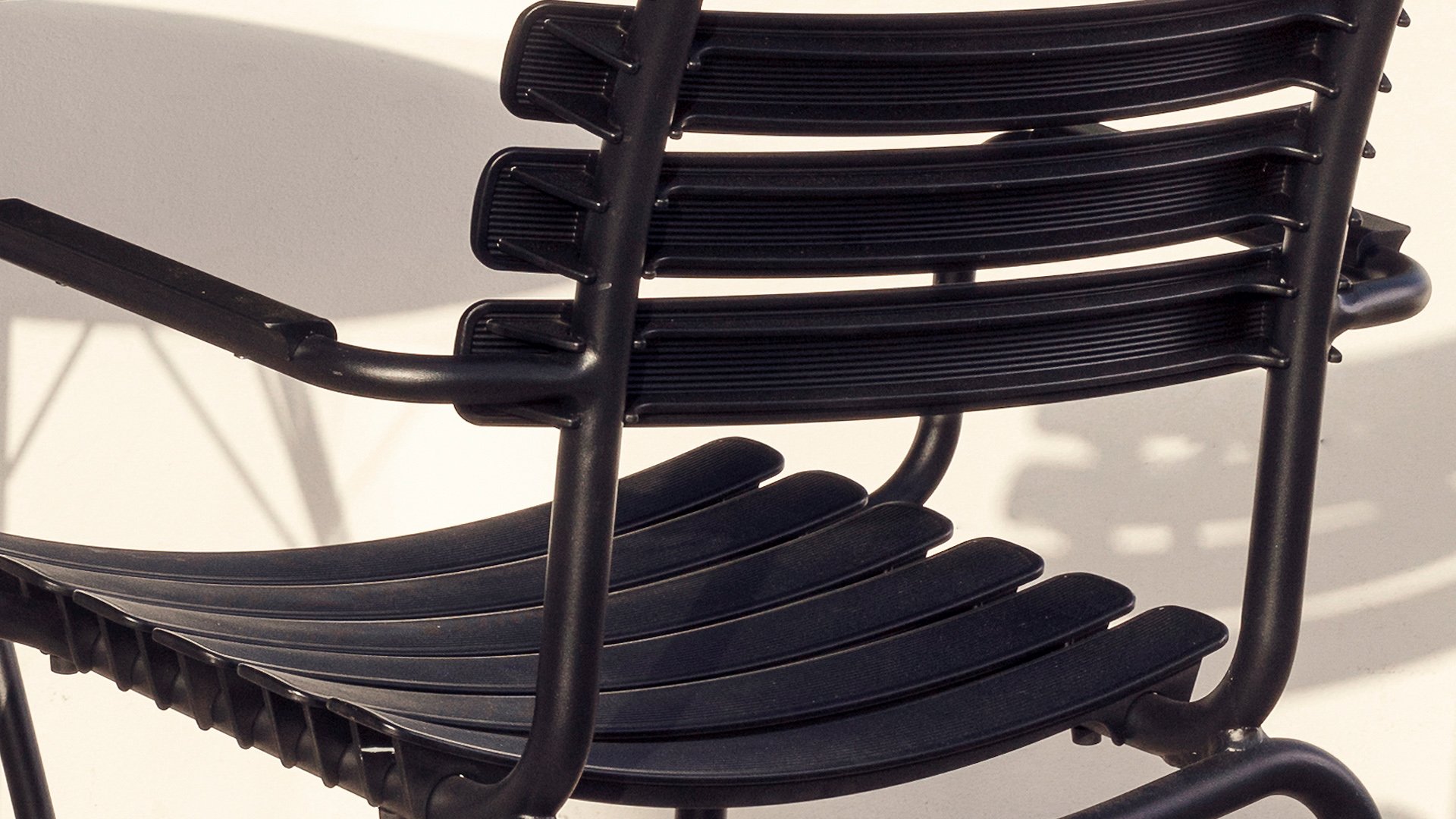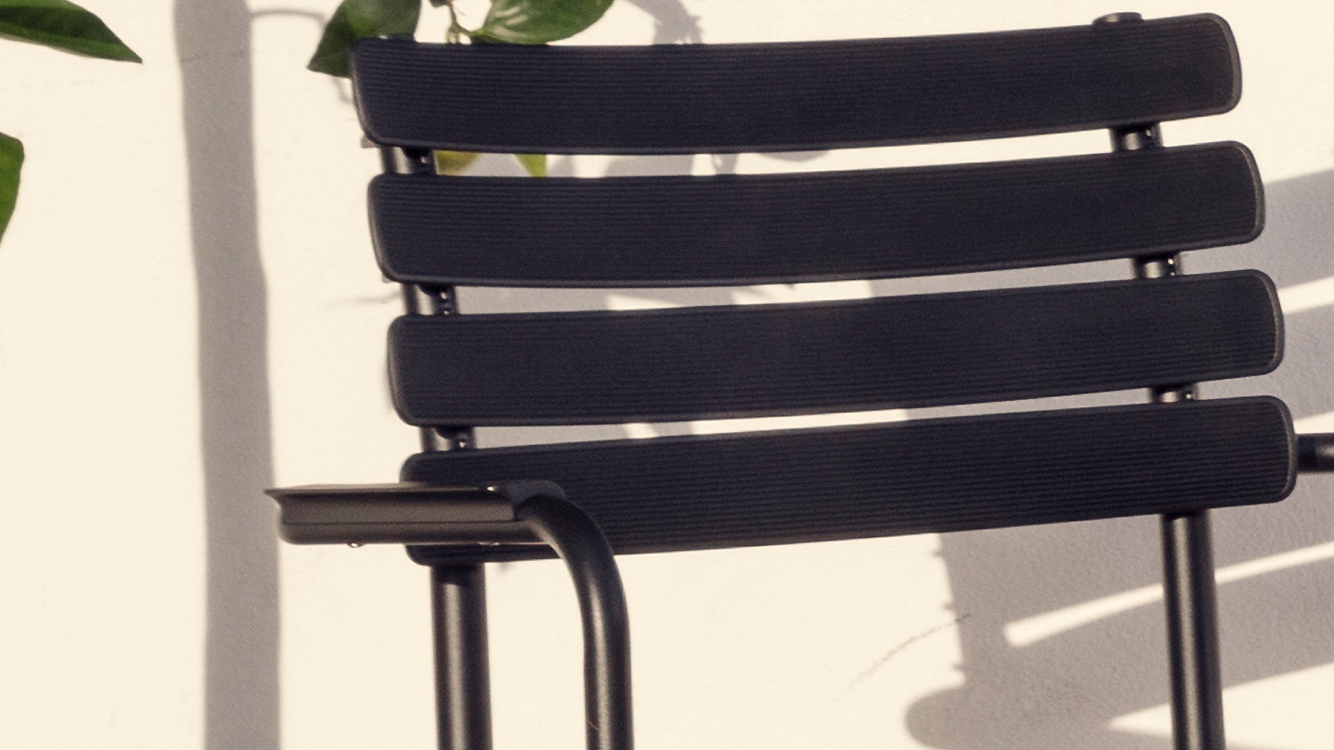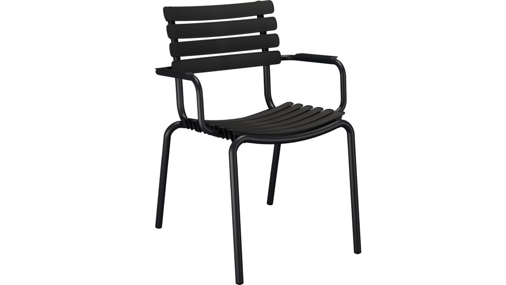 HOUE ReClips Dining collection: Lightweight with a minimalist design. Made from fully recycled plastic! The garden chair is designed by Henrik Pedersen, a Danish designer we already know from the iconic Click! Available in 4 colors, with bamboo or aluminum armrest.