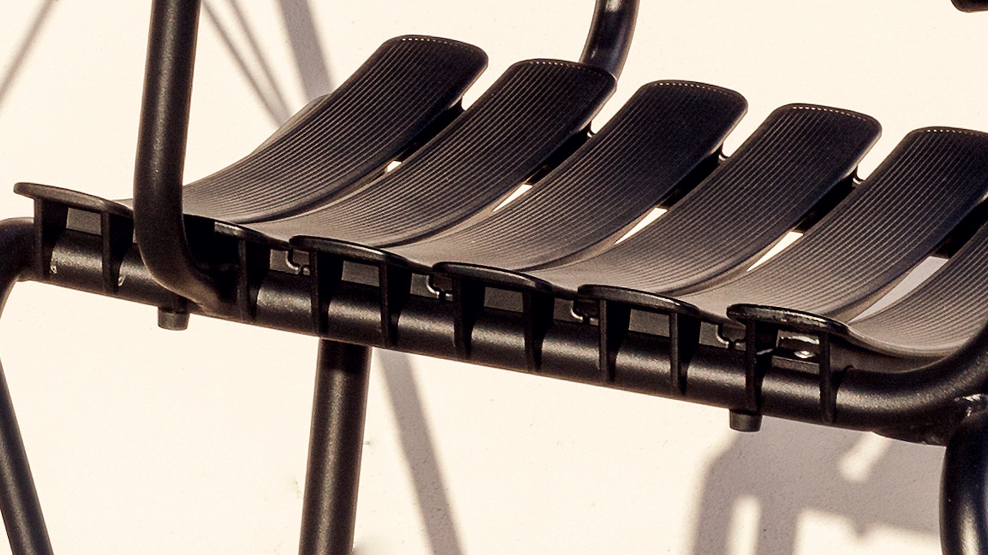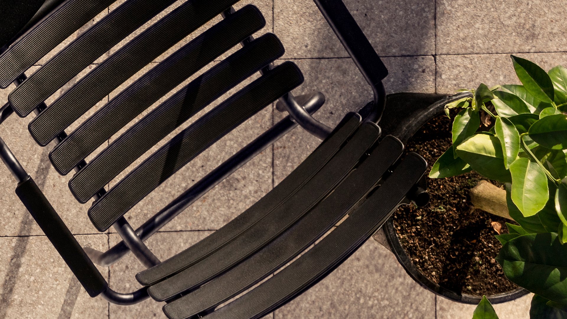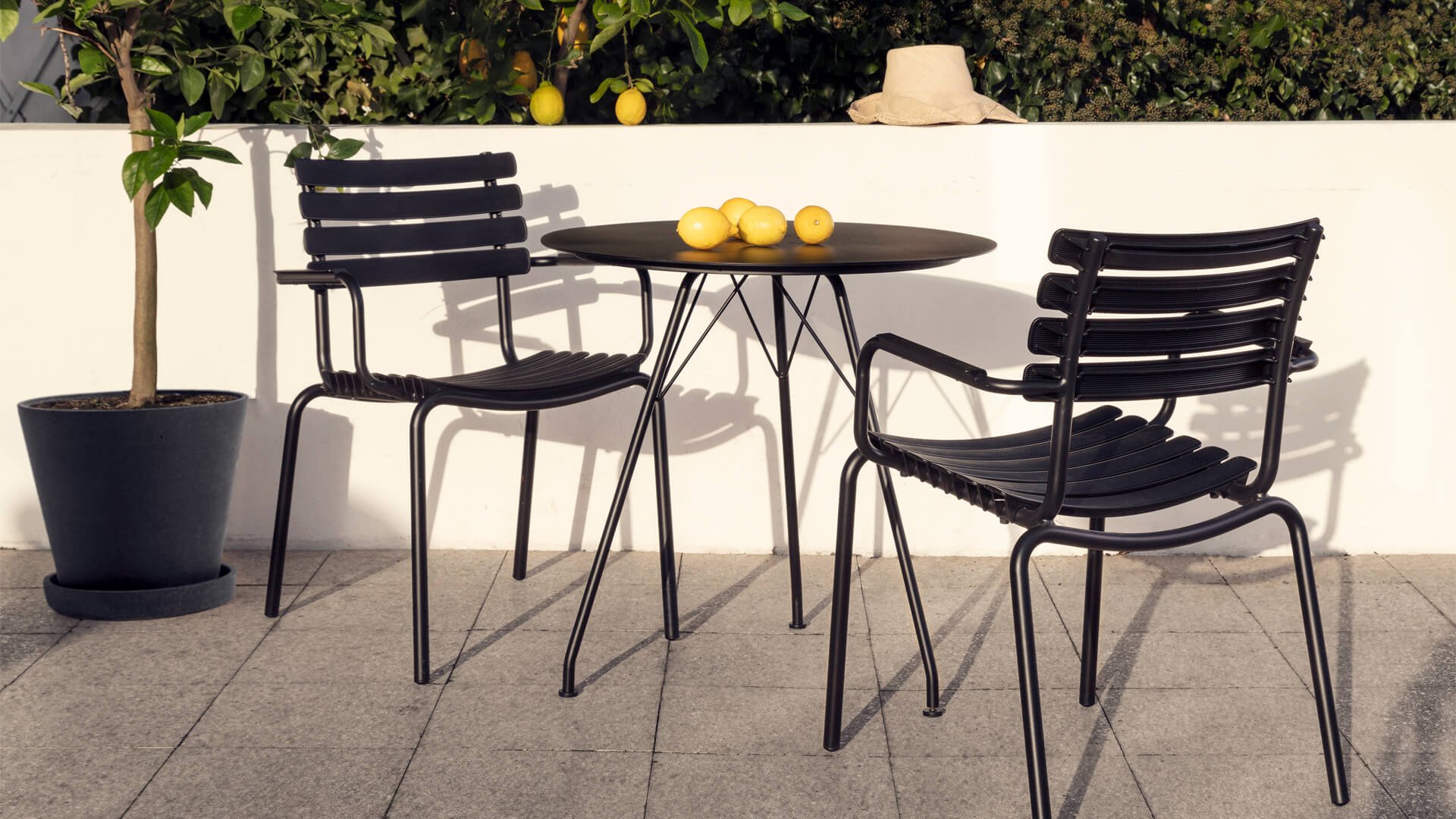 HOUE ReClips Dining collection: Lightweight with a minimalist design. Made from fully recycled plastic! The garden chair is designed by Henrik Pedersen, a Danish designer we already know from the iconic Click! Available in 4 colors, with bamboo or aluminum armrest.