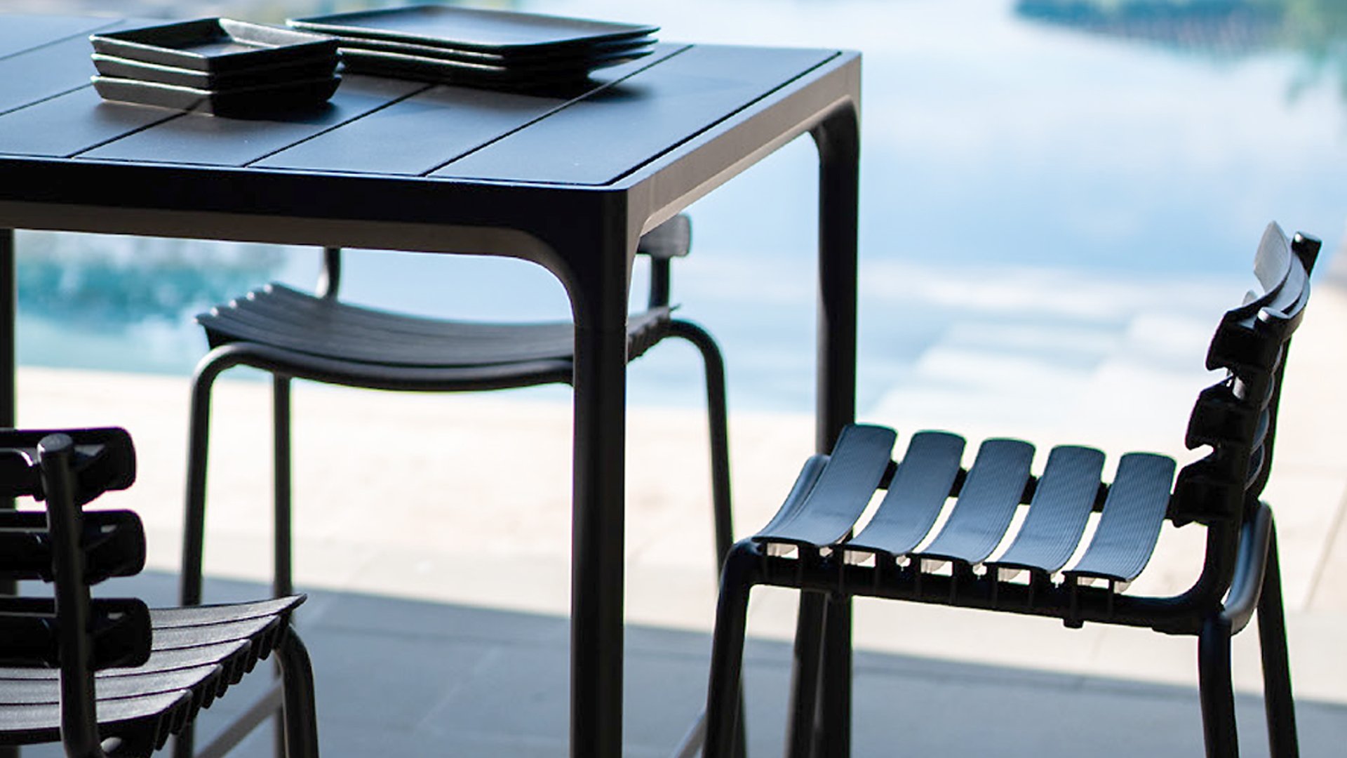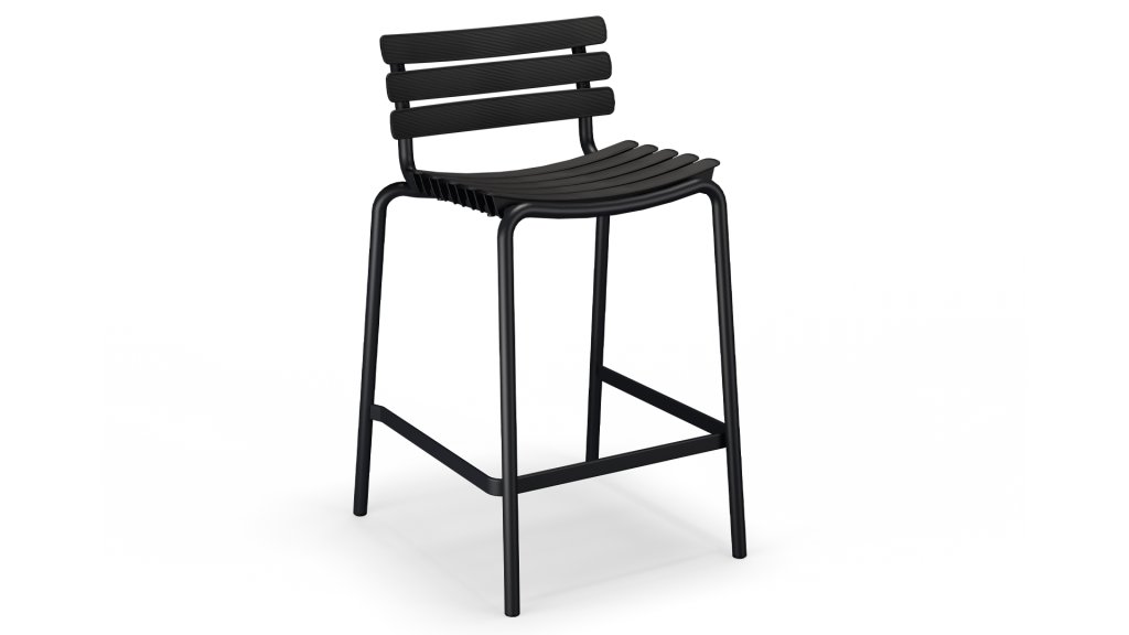 The HOUE Reclips series is made from recycled plastic. In combination with the powder-coated aluminum frame, this is a maintenance-free lounge chair. The ergonomically shaped back makes the chair very comfortable to use without a cushion. In this series, a bar stool, garden chair, and rocking chair are also available.