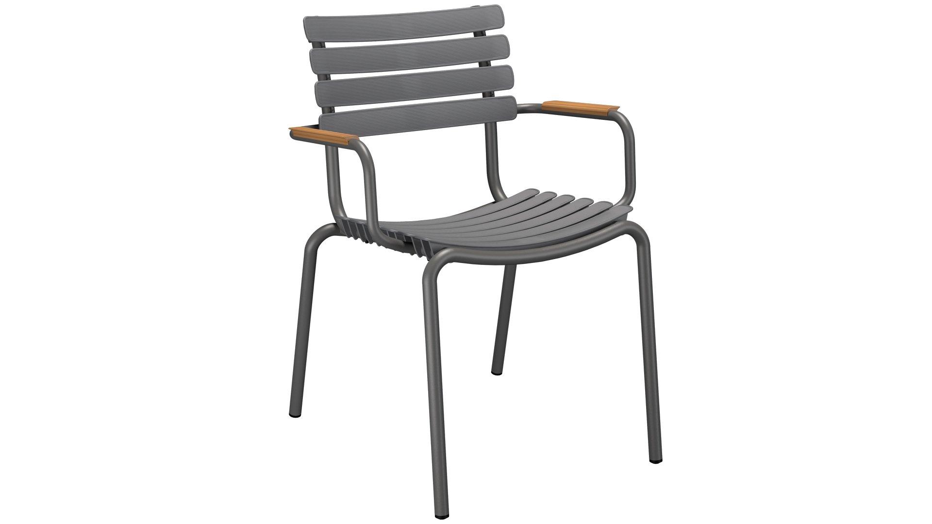 HOUE ReClips Dining collection: Lightweight with a minimalist design. Made from fully recycled plastic! The garden chair is designed by Henrik Pedersen, a Danish designer we already know from the iconic Click! Available in 4 colors, with bamboo or aluminum armrest.