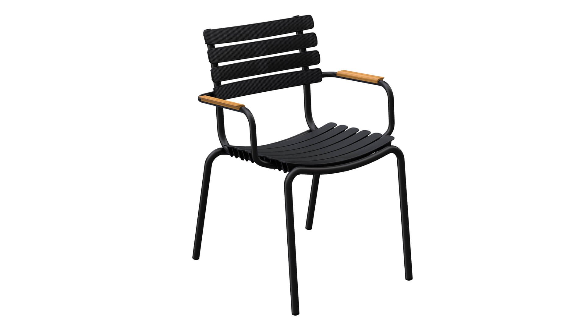 HOUE ReClips Dining collection: Lightweight with a minimalist design. Made from completely recycled plastic! The garden chair is designed by Henrik Pedersen, a Danish designer known for the iconic Click! Available in 4 colors, with bamboo or aluminum armrest.