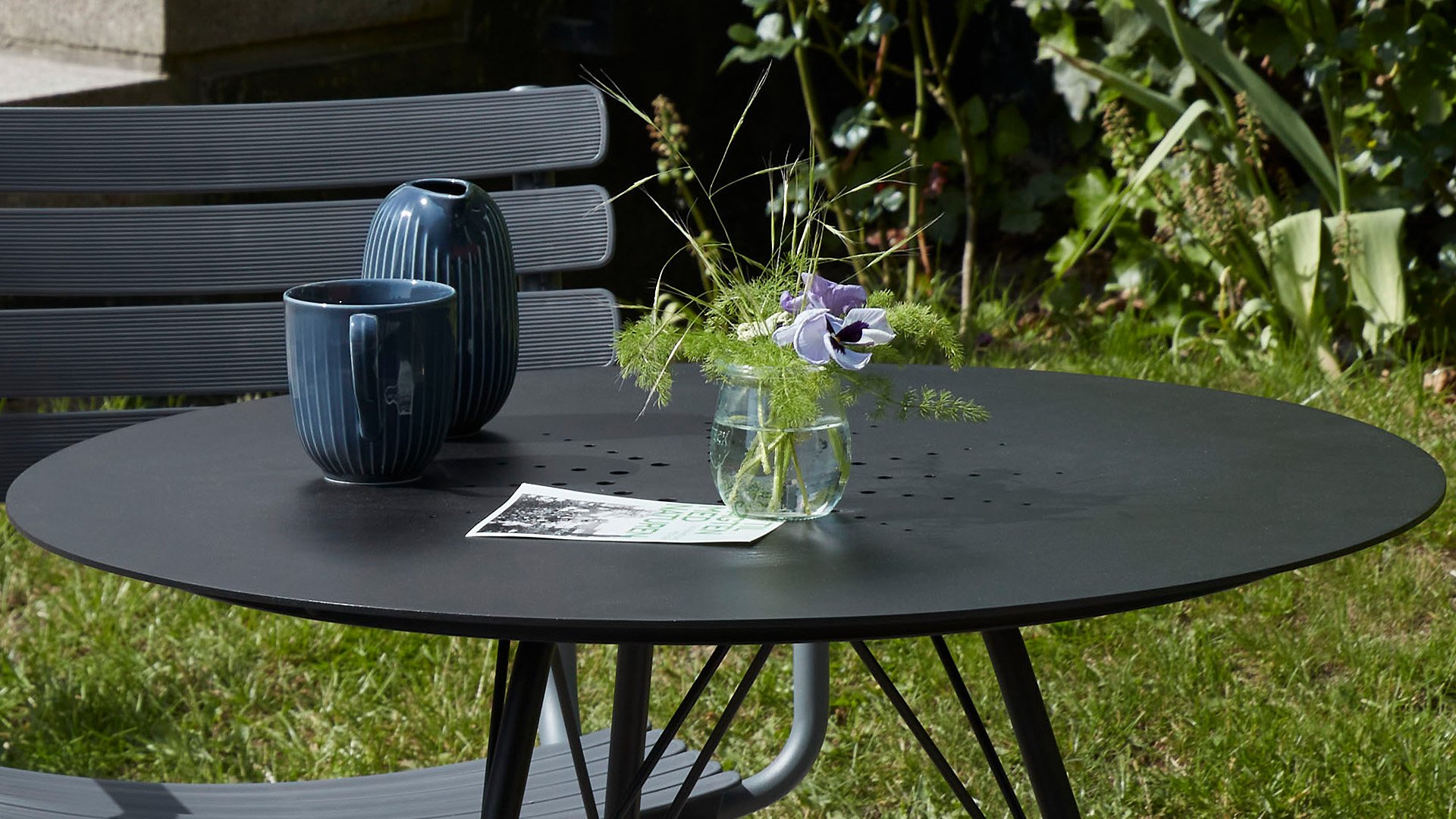 What a stylish bistro table this HOUE Circum table is. The sleek aluminum table top combined with the stylish legs make this table a wonderful addition to any garden or balcony. Can be combined with the entire dining collection from HOUE. Can you imagine yourself having a cup of coffee at this table?