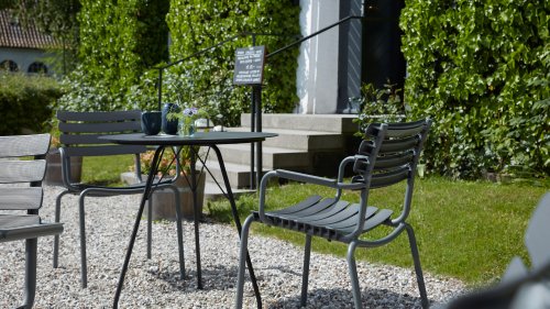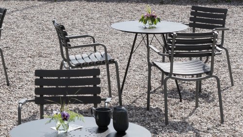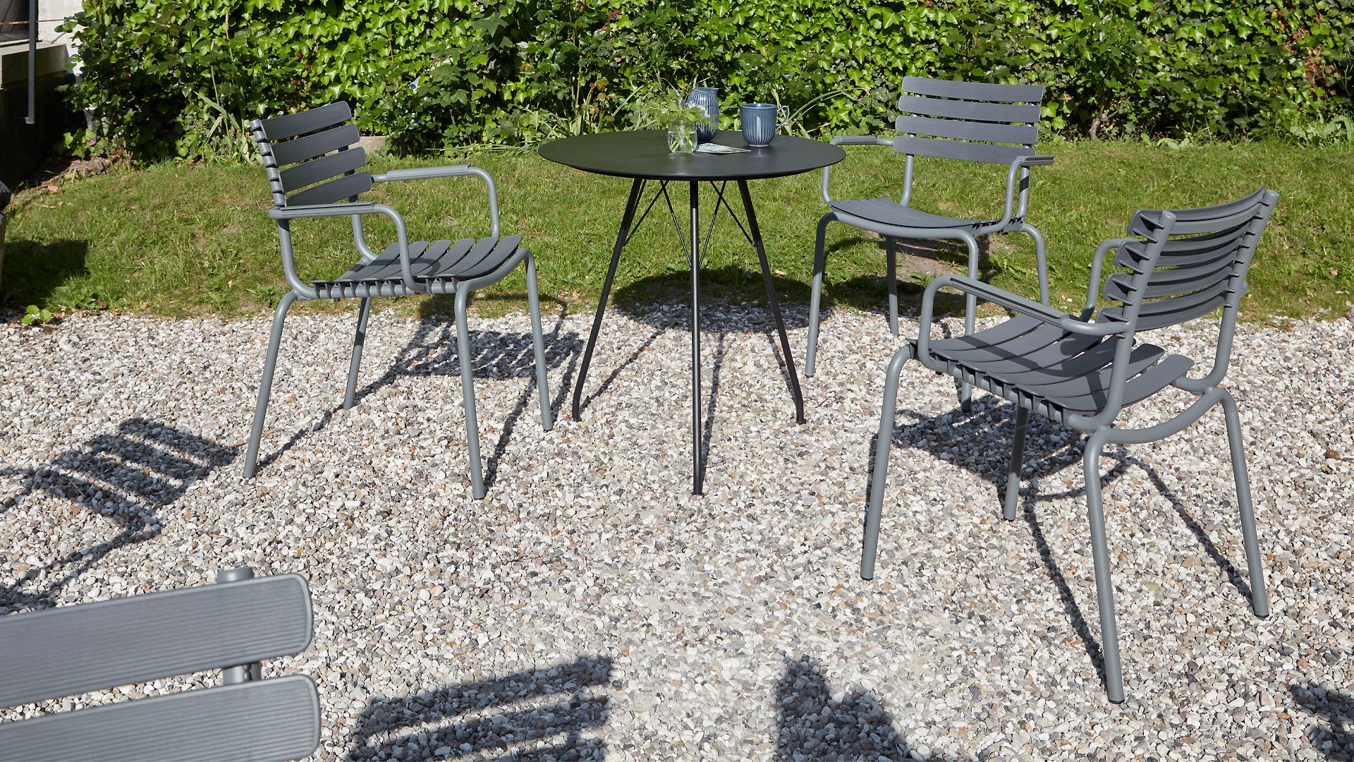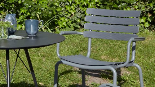 HOUE ReClips Dining collection: Lightweight with a minimalist design. Made from fully recycled plastic! The garden chair is designed by Henrik Pedersen, a Danish designer known for the iconic Click! Available in 4 colors, with bamboo or aluminum armrest.