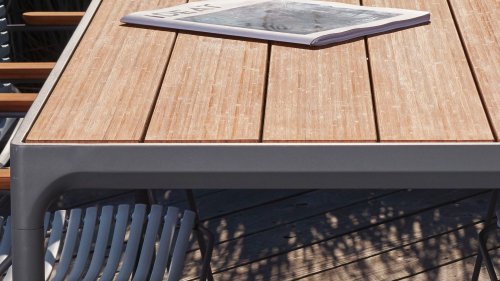 The Houe Four table is a robust model that fits well in an industrial or rugged interior. The table is designed to withstand all weather conditions. The Four table has a strong aluminum frame available in powder-coated gray or black. The bamboo tabletop has a structure that is very suitable for outdoor use. The table comes in sizes with a length of 90, 160, 210, and 270cm, all with a width of 90cm and a height of 74cm (bar table 111cm high). Bamboo is a more sustainable alternative to teak. However, we recommend applying oil to the bamboo 2-3 times a year to maintain its warm colors for longer.