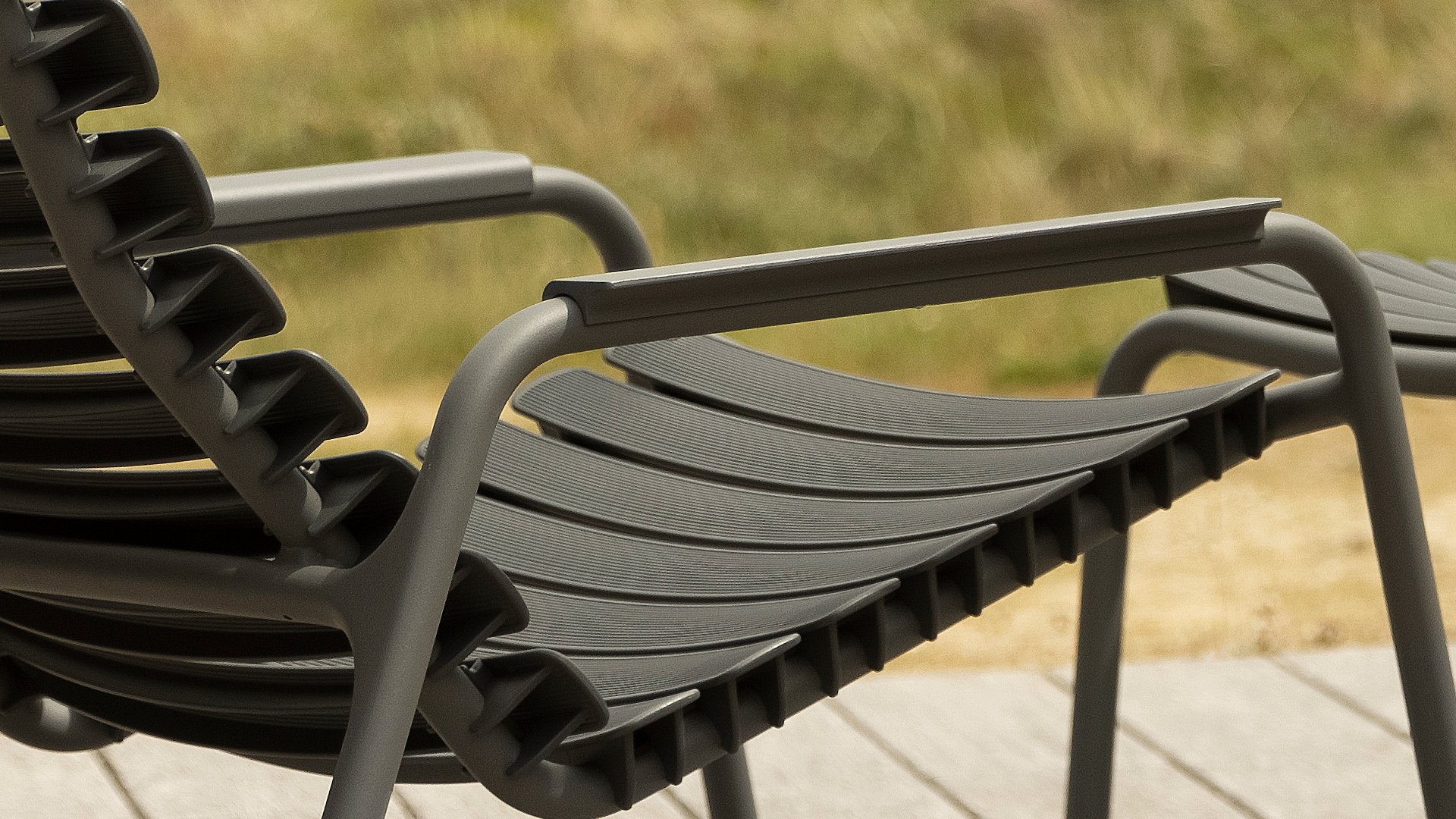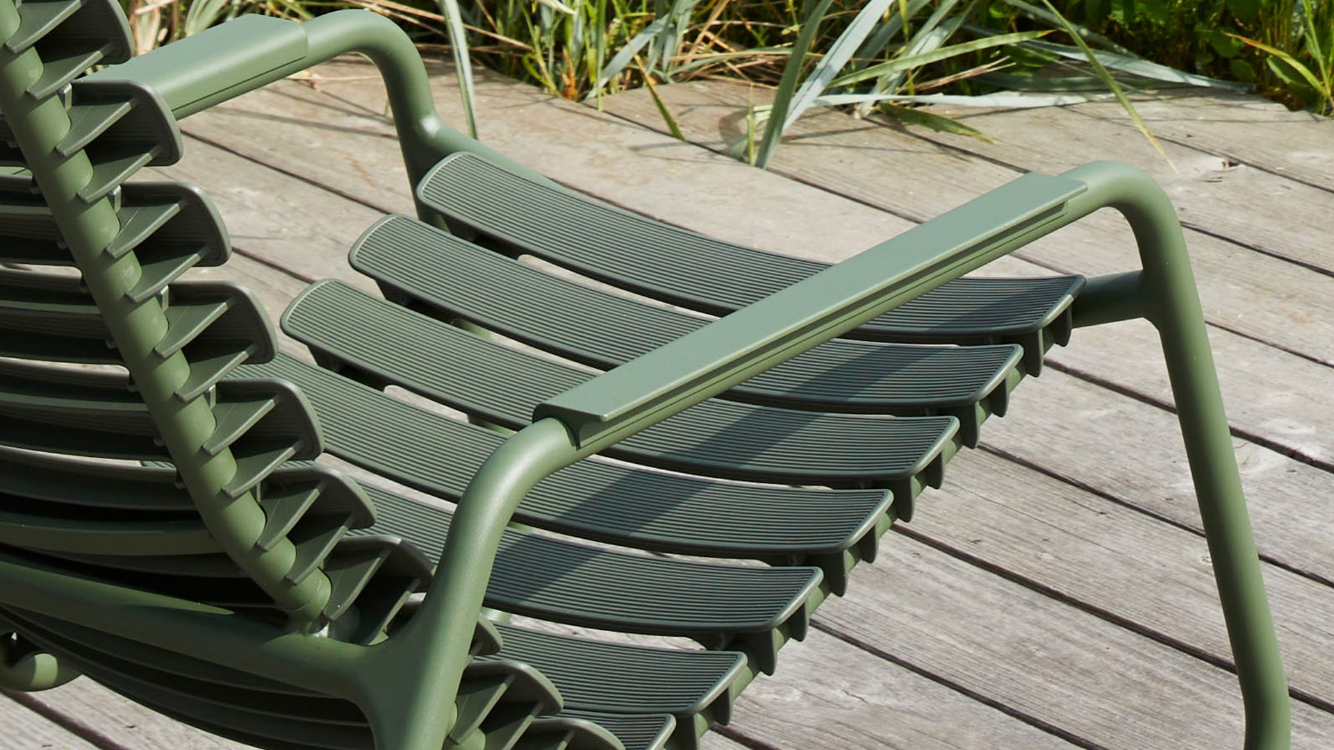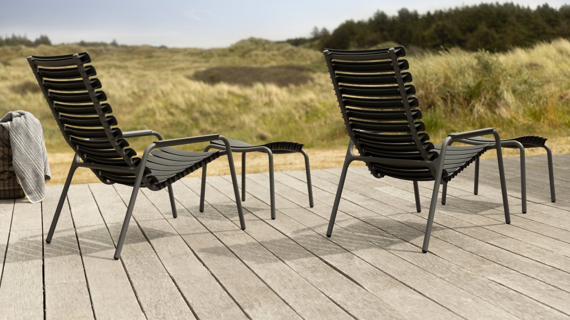 The ReClips lounge collection from HOUE is made of conveniently designed plastic slats, attached to an aluminum frame with powder coating. The components of the large slats are carefully selected to provide the right strength and resilience. The aluminum combined with UV-protected plastic minimizes maintenance. The HOUE ReClips is designed with comfort in mind and shaped to offer excellent, cushion-free comfort, so you can relax for hours on end.