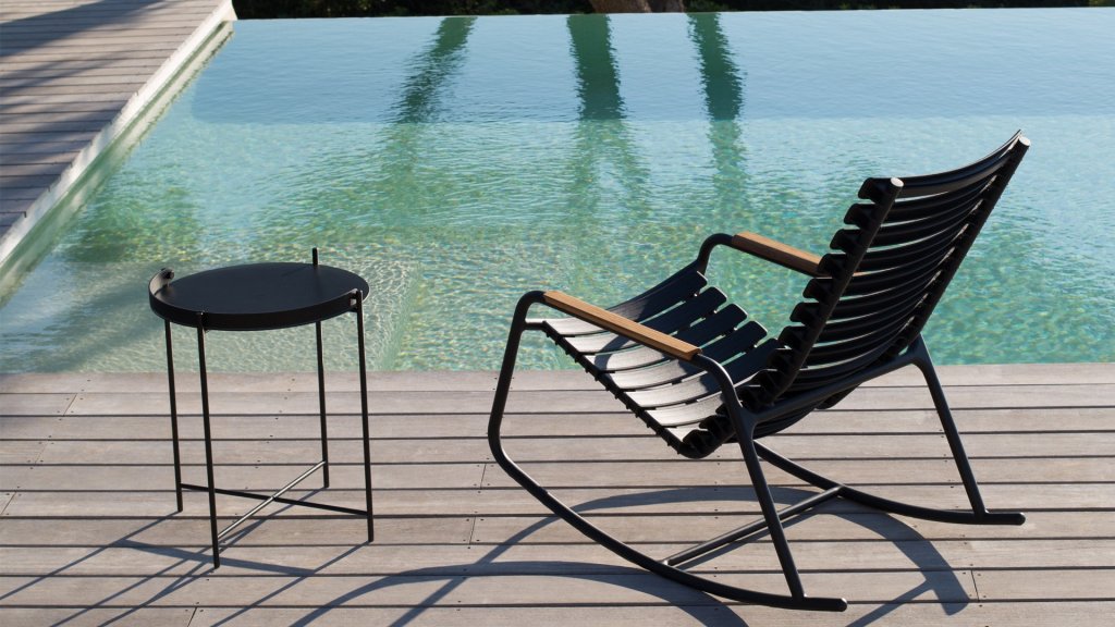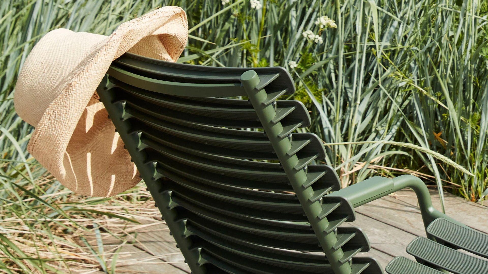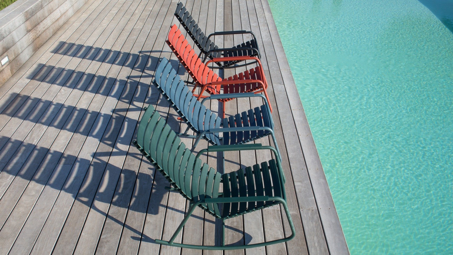 The ReClips lounge collection from HOUE is made of conveniently designed plastic slats, attached to an aluminum frame with powder coating. The components of the large slats are carefully selected to provide the right strength and resilience. The aluminum combined with UV-protected plastic minimizes maintenance. The HOUE ReClips is designed with comfort in mind and shaped to offer excellent, cushion-free comfort, so you can relax for hours on end.