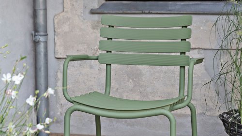 HOUE ReClips Dining collection: Lightweight with a minimalist design. Made from fully recycled plastic! The garden chair is designed by Henrik Pedersen, a Danish designer we already know from the iconic Click! Available in 4 colors, with bamboo or aluminum armrest.