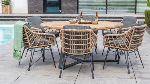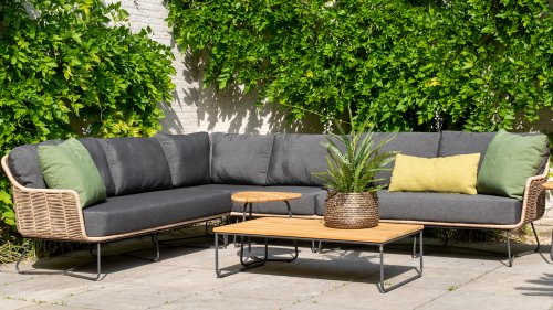 Natural tones and materials from outside.  In the Naturals theme, it's all about taking a break from daily life and immersing yourself in the seductive beauty of nature. Personalize your outdoor space with natural color tones, surprising shapes, and materials that remind you of the splendor of untouched nature. This concept offers the perfect mix of comfort and style to anyone who values peace and authenticity.