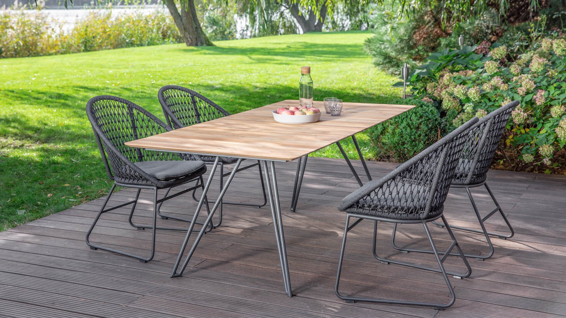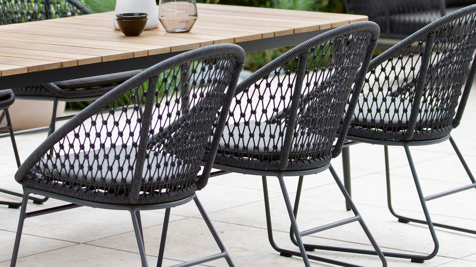 Less is more, within our Niehoff Kuta series, the garden furniture is designed with a minimalist yet rural style, with functional simplicity and graceful design. The beautiful frames are made of aluminum for optimal weather resistance. The base is delicately shaped but extremely strong, powder-coated aluminum in anthracite color. When combined with the beautiful anthracite-colored woven rope, it creates a modern yet warm look. The rounded shapes completely balance this design.