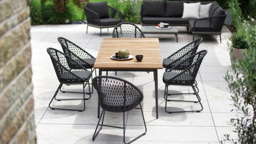 The Niehoff Kuta garden set has a modern yet rustic appearance with a natural touch that is characteristic of the design. The beauty lies in the details. The frame of the Niehoff Kuta seamlessly flows together and is finished with tightly woven Rope. The backrest and armrests are woven with this strong Rope, providing a sturdy yet comfortable seating experience. The frame forms a playful and minimalist interplay of flowing lines that come together and separate again. The sides and back are finished with skillfully woven Rope, creating a playful knotted diamond pattern... In short, a feast for the eyes!