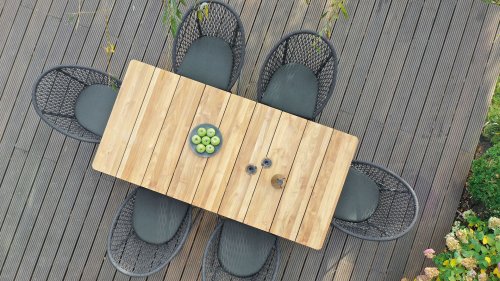 The Niehoff Kuta frame is woven with synthetic wicker in the form of rope (Rope). The cushions are made of beautiful Praia Charcoal fabric. The elasticity of the Rope material and the comfortable seat and back cushions create a sublime seating comfort! This fabric is highly weather-resistant and durable.