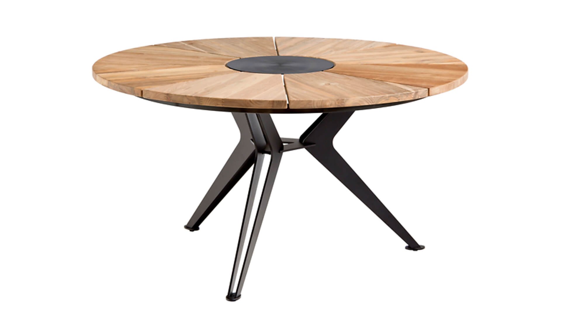 NEXOR is the ideal place for social gatherings. Solid Teak wood combined with a sustainable anthracite-colored steel centerpiece radiates warmth without compromising functionality. Consistently 30 mm thick solid wood and high-quality galvanized and powder-coated steel ensure a long lifespan.