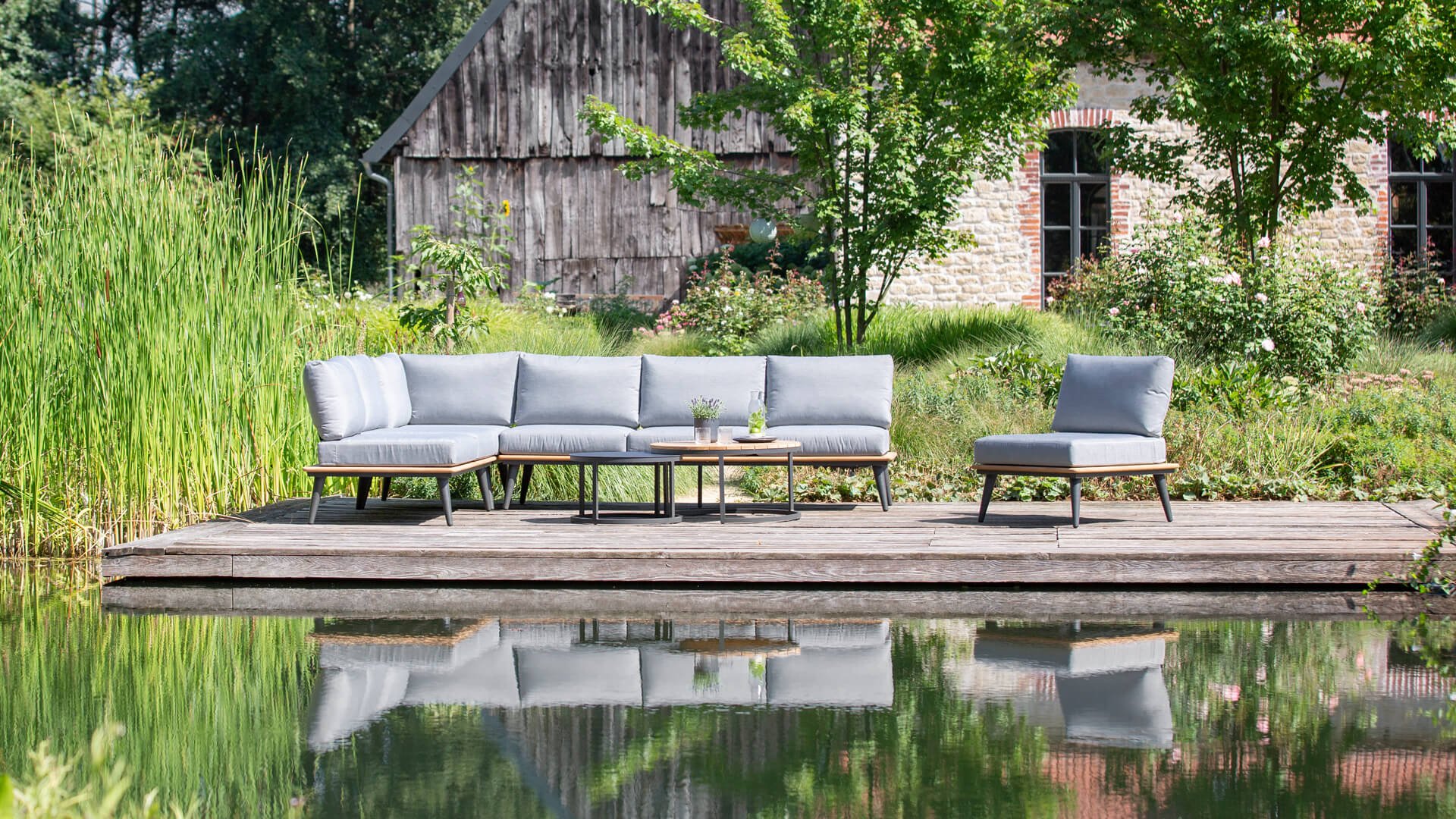 Material Lounge set Teak, Powder-coated Aluminium/Steel