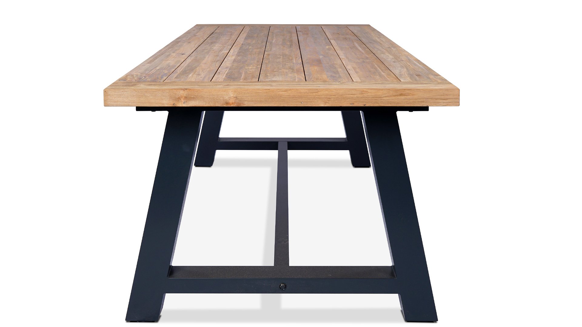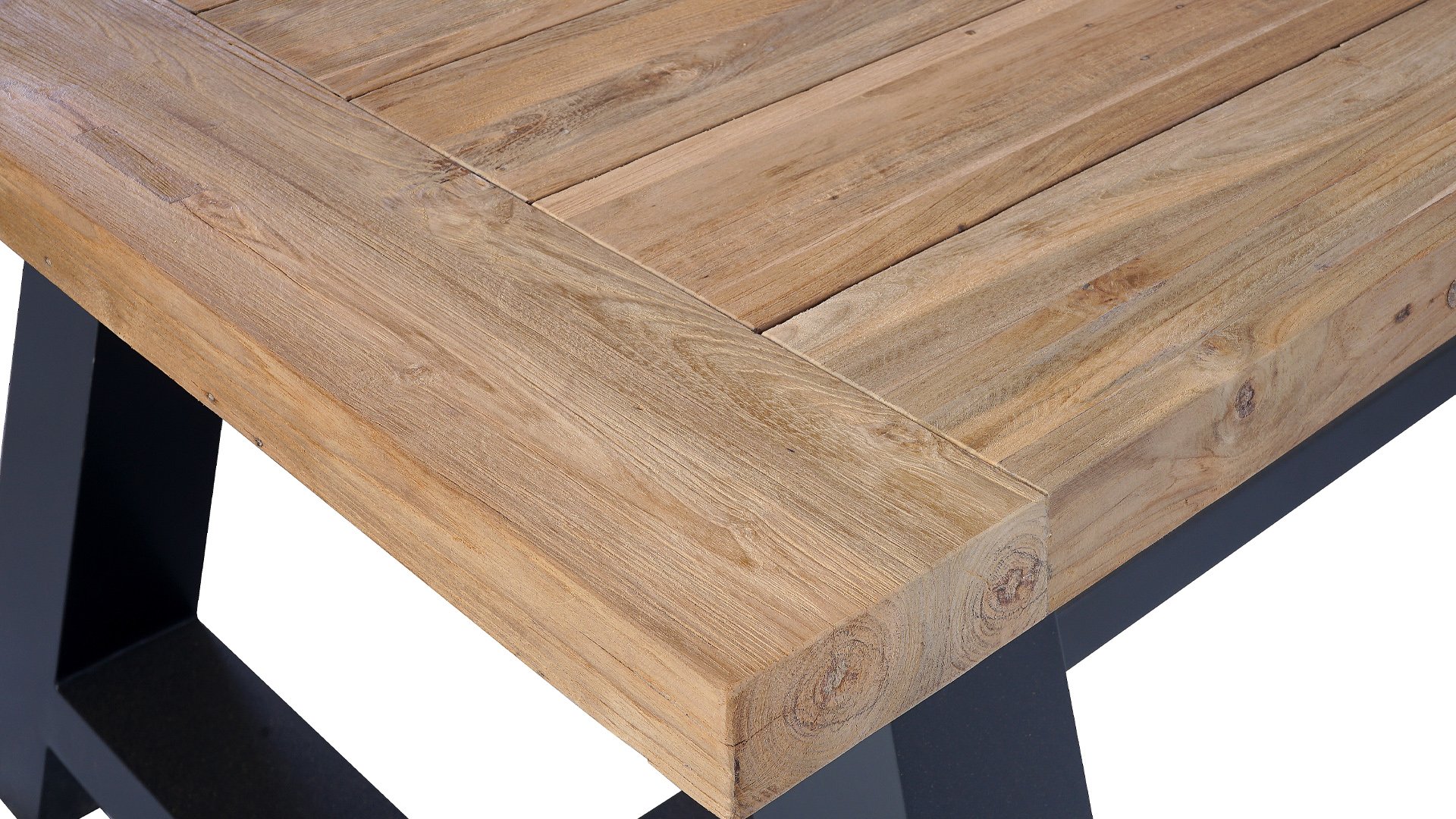 The SenS Belfast table is a robust teak table suitable for outdoor use. The top is made of recycled teak and the frame is powder-coated aluminum. Please note that every teak wood reacts to weather conditions. Since the top is made from recycled teak, the table has a sustainable character. Irregularities and imperfections are characteristic of this product.