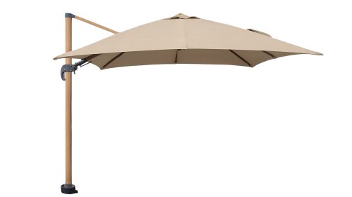The Jamaica hanging arm parasol combines a luxurious appearance with clever ease of use. The aluminum frame with a wood finish creates a warm, modern look, while the sturdy 250g olefin canopy with UPF50+ offers optimal sun protection.