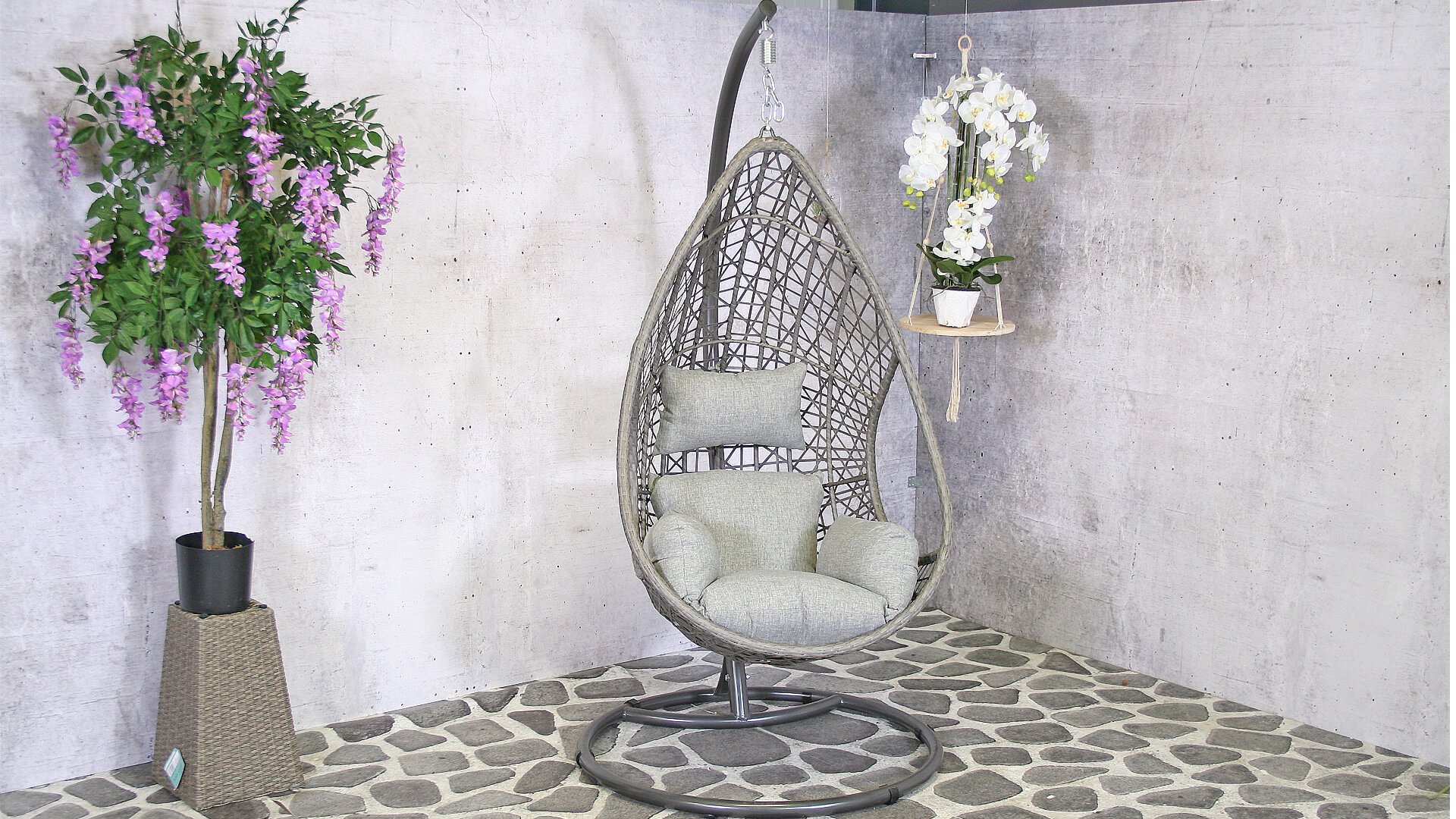 Thanks to the stand, you can easily move the chair and set it up anywhere in the garden, in the shade, in the sun, on the porch, or on your terrace. You can adjust the height of the egg by using the steel chain.