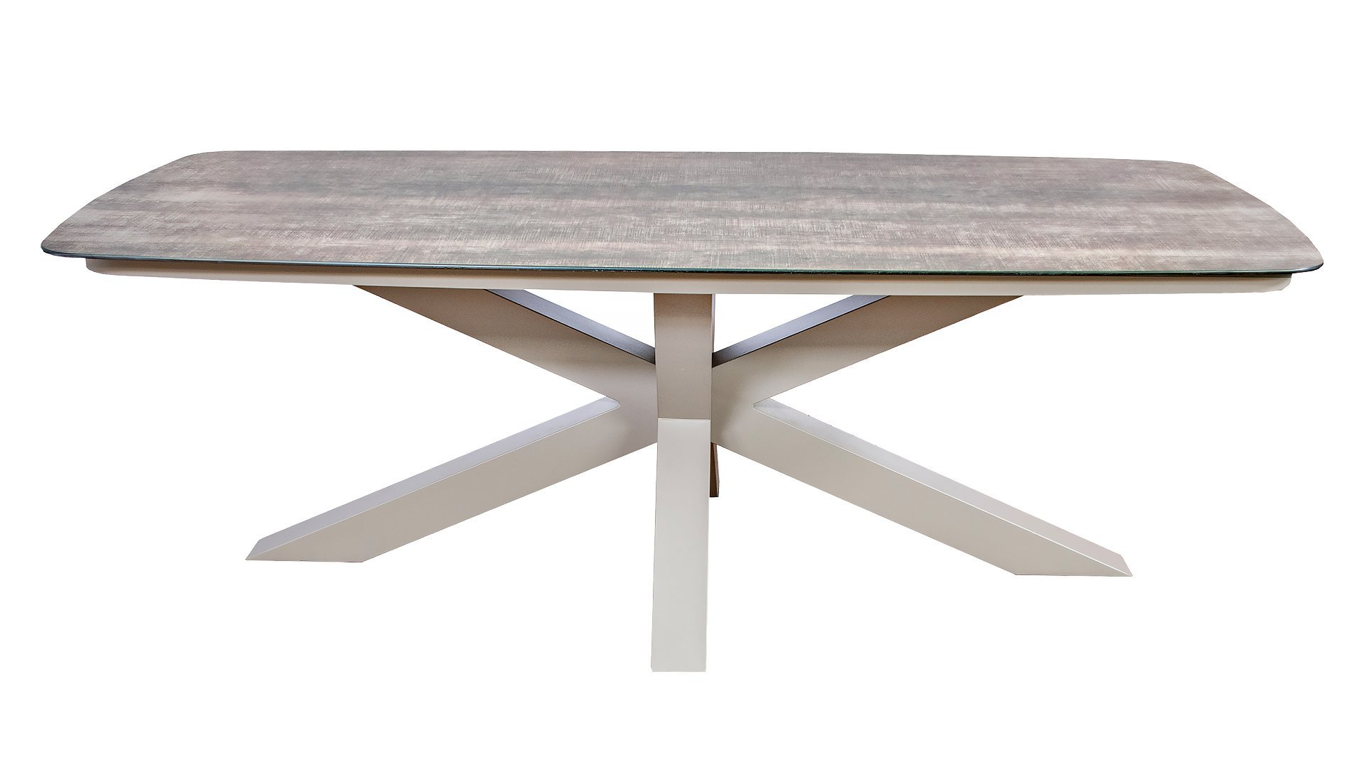 The Valerie 220cm. Crafted from powder-coated aluminum in a taupe finish and featuring an 8mm ceramic-on-glass tabletop, it's virtually maintenance-free. This beautiful table combines functionality with a stylish design, making it the ideal choice for anyone who enjoys outdoor living.