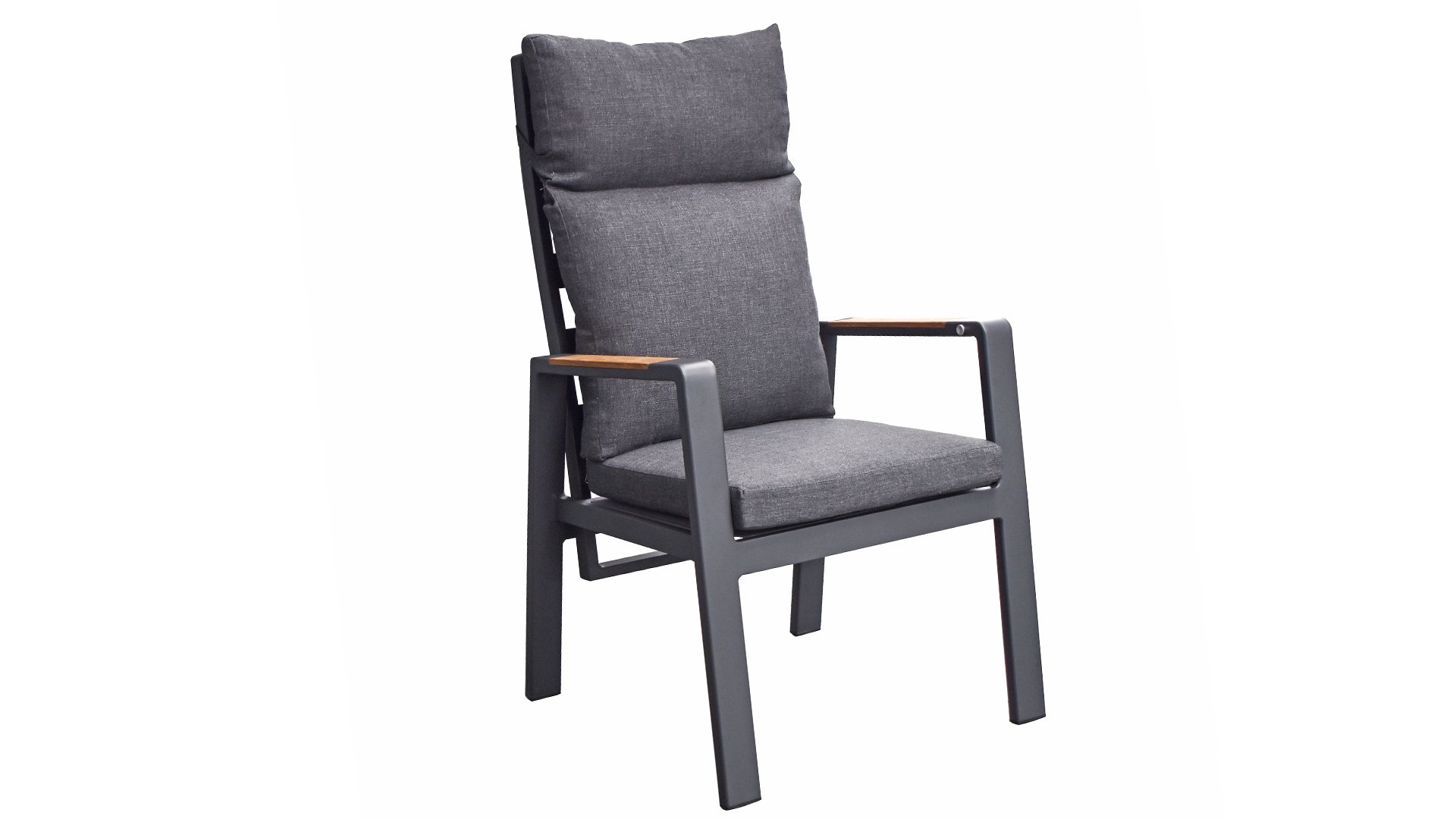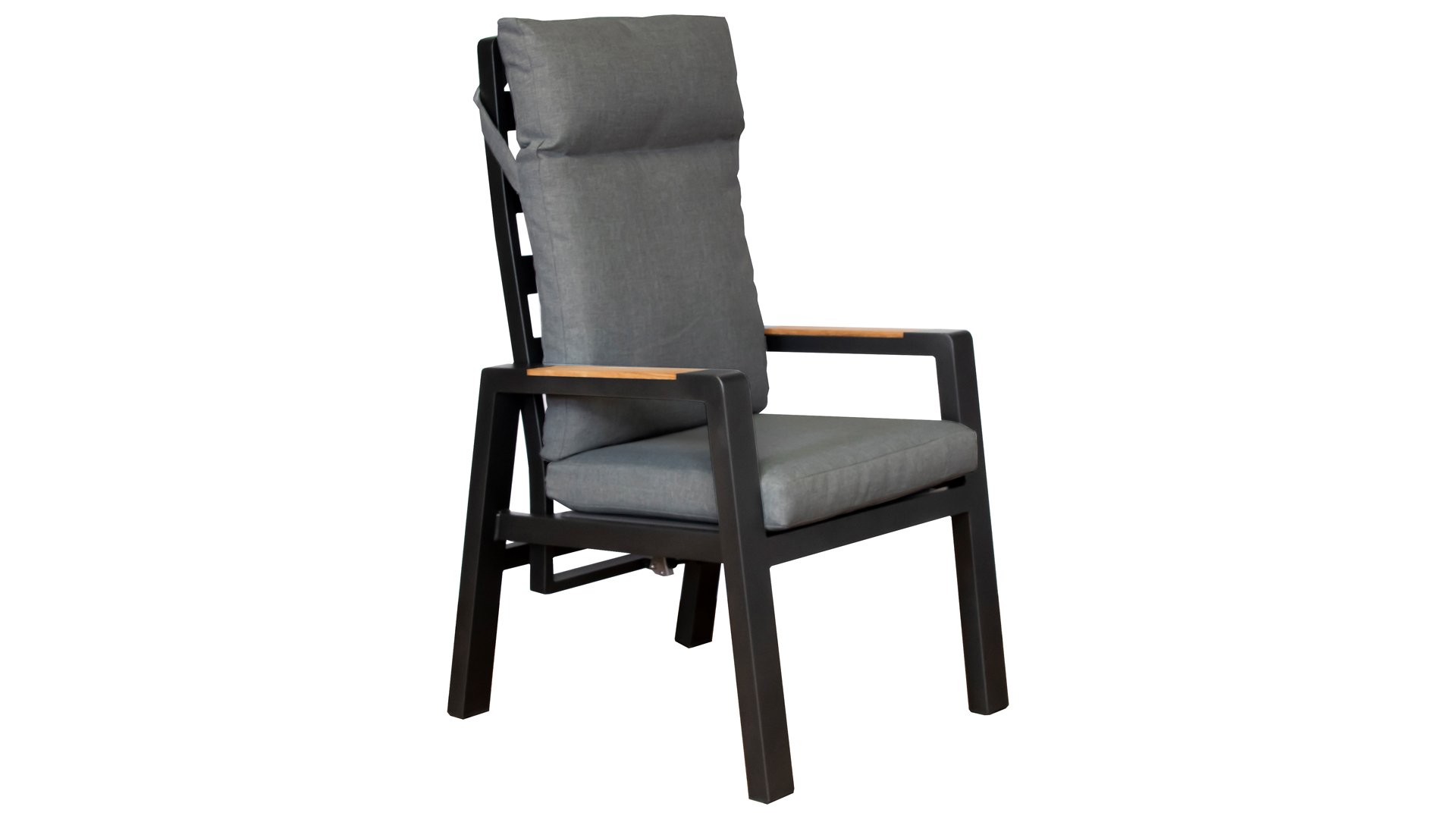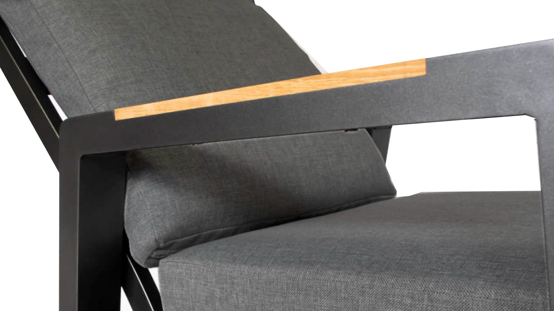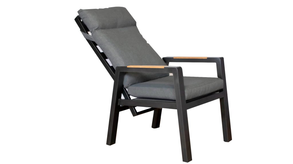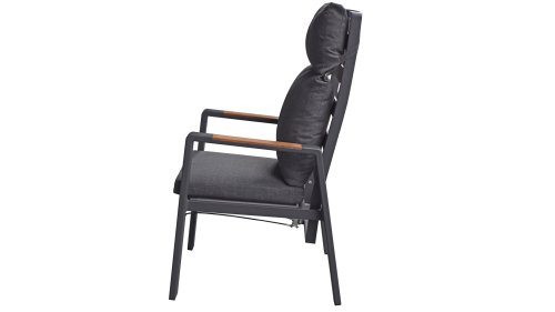 the Sens-Line Victoria is a comfortable armchair with infinitely adjustable backrest made of modern and atmospheric materials. It can be combined in many ways. The super chic armchair with a high backrest made of powder-coated aluminum with warm teak wood details in the armrest will enchant you.