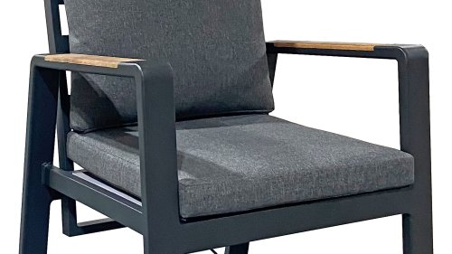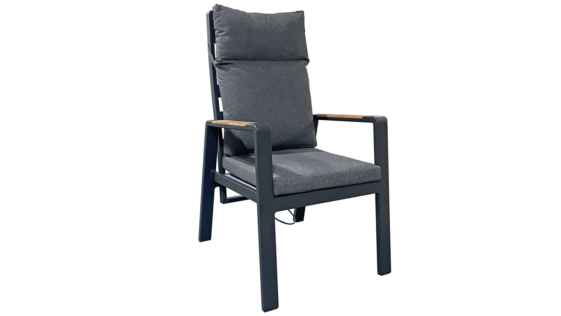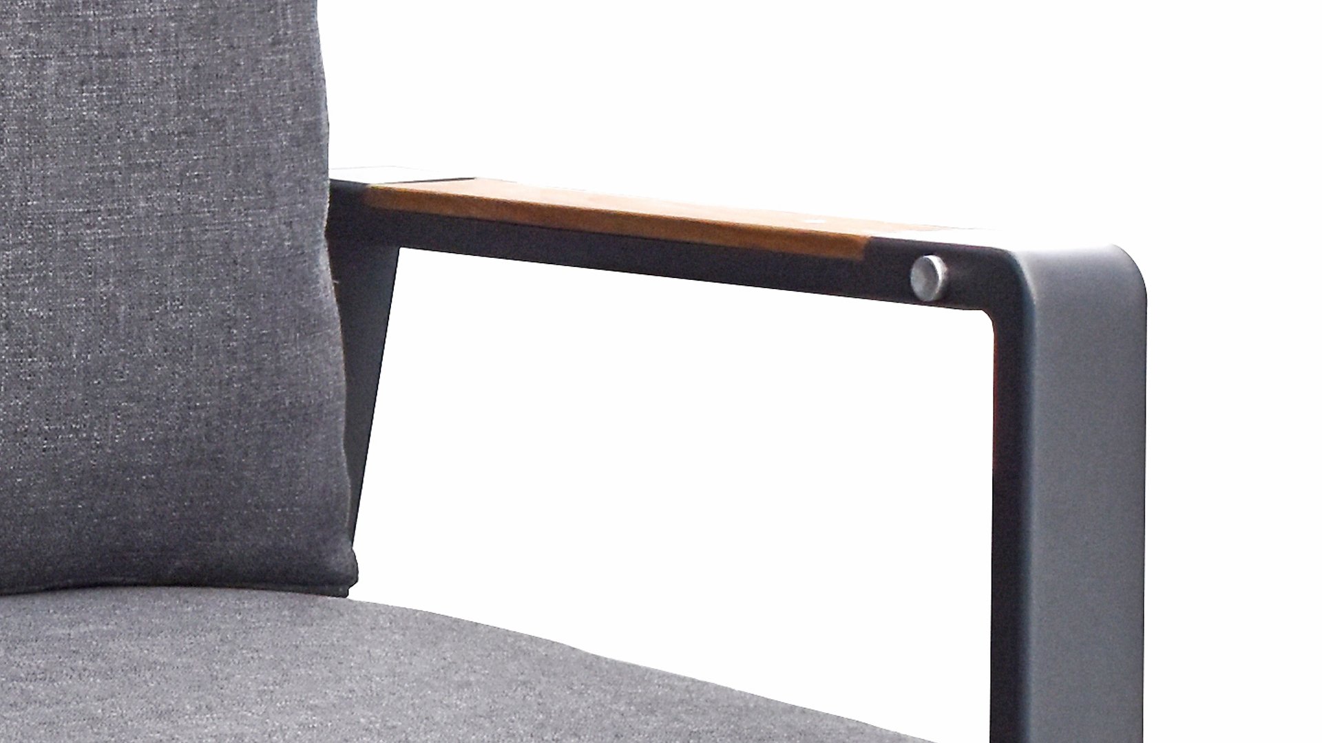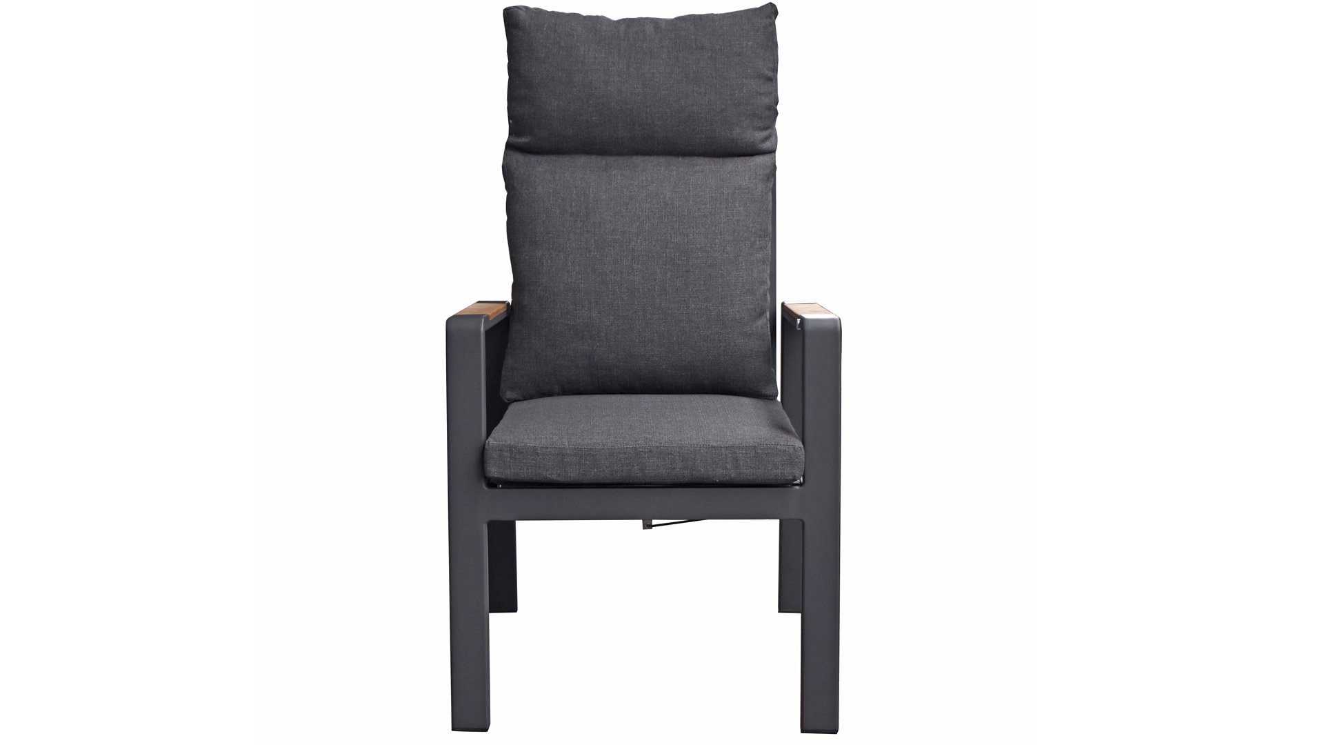 the Sens-Line Victoria is a comfortable armchair with infinitely adjustable backrest made of modern and atmospheric materials. It can be combined in many ways. The super chic armchair with a high backrest made of powder-coated aluminum with warm teak wood details in the armrest will enchant you.