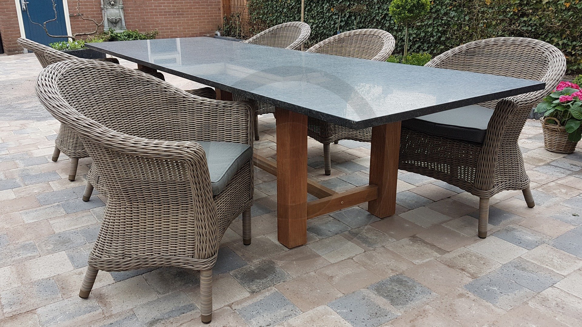 A granite table from Studio20 guarantees quality. The warm colors of the Voss frame combined with the dark granite make this table a gem. Enjoy maintenance-free!