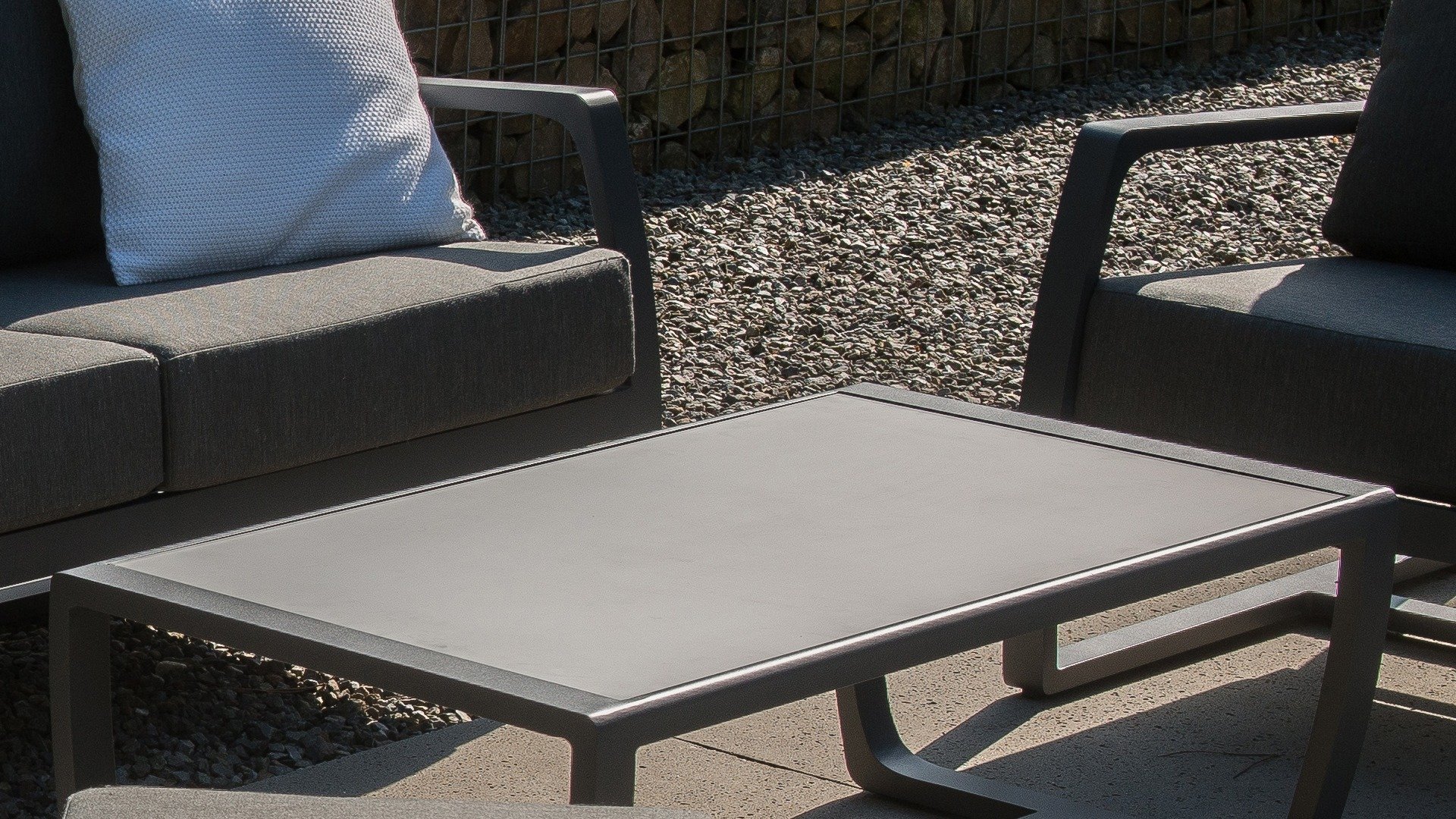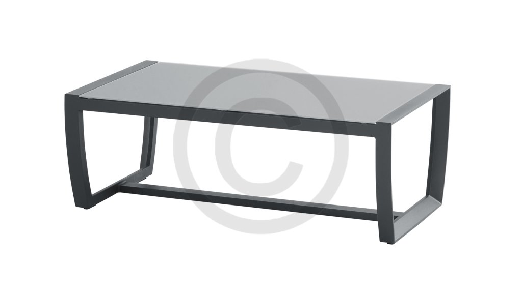 Taste by 4Seasons New Mauritius coffee table has a powder-coated aluminum frame, with a matt tempered glass tabletop. Applicable to all 4Seasons Matt Carbon/Anthracite lounge sets.