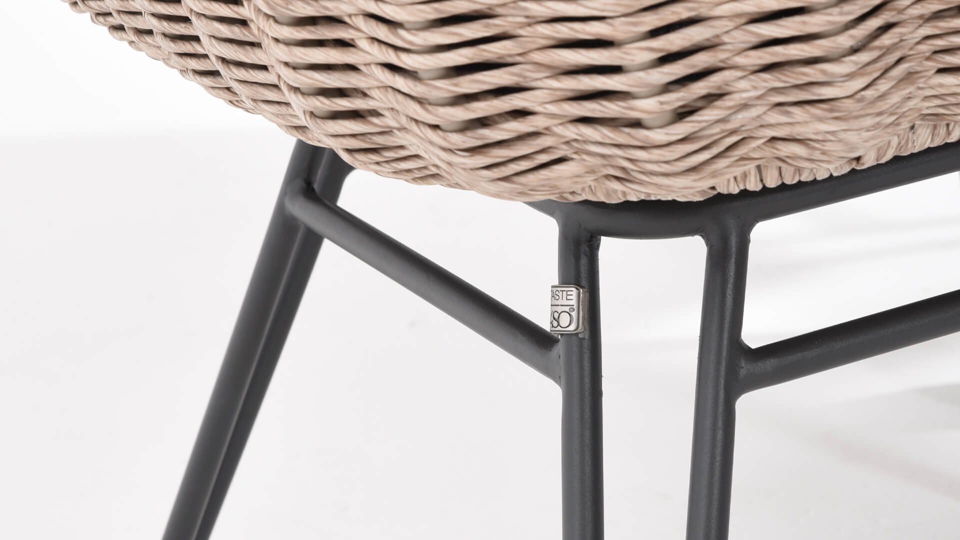 The material of the 4SO Bohemian bar chair is a new variant of the well-known braided work. It is a twisted braided wire in the color natural. This gives the Bohemian dining chair a natural rope-like appearance. The entire shell of the chair is made of this material, weather-resistant and low-maintenance, so it is ideal to leave it outside all year round.