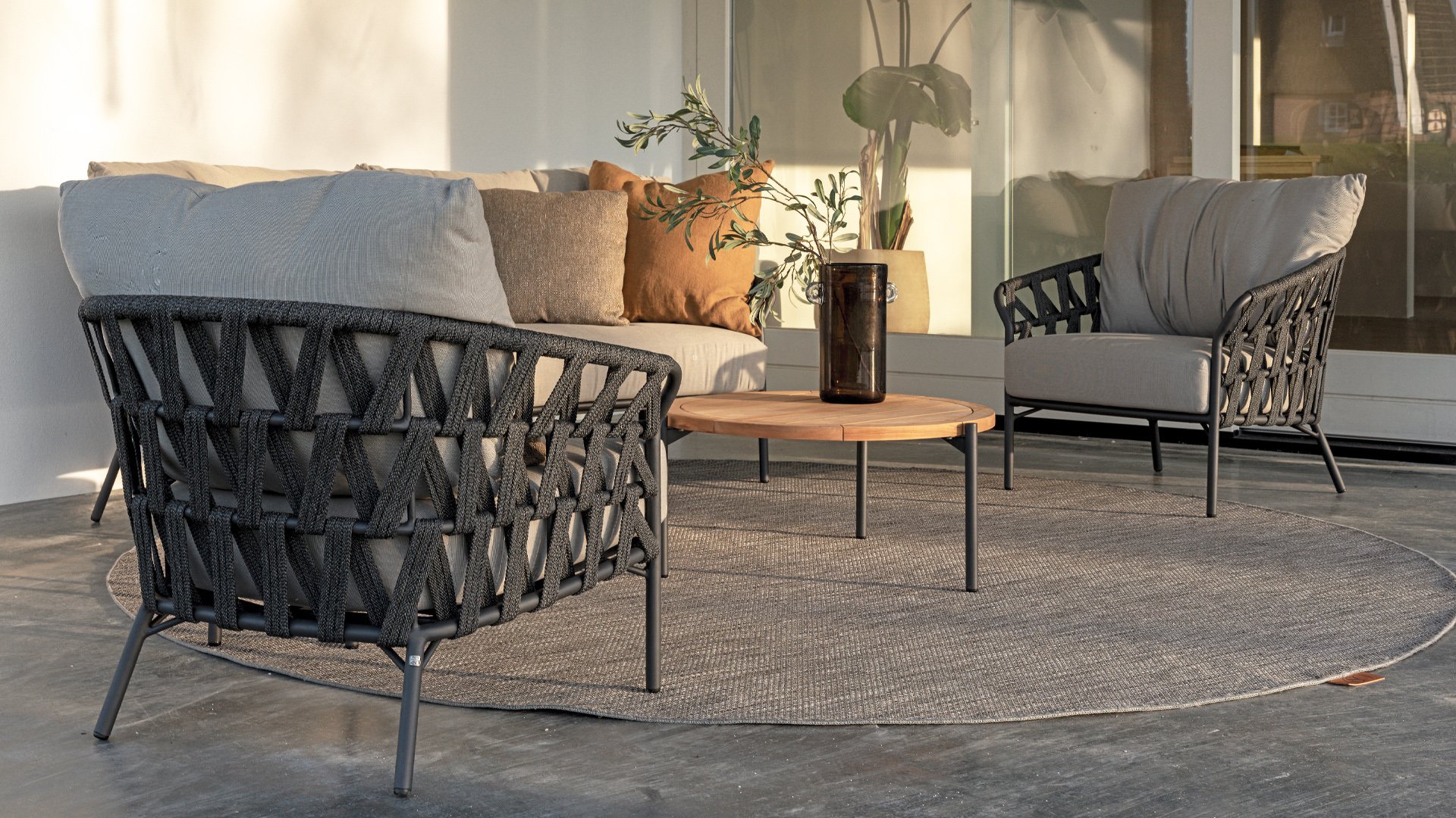 The Albareto series from taste by 4Seasons Outdoor is new this year! And what a star it is. With unprecedented seating comfort in this price range. In the Taste Albareto lounge, the cushion wraps around the back, providing good support and elevating lounging to a new level. The wide braided wire and thick seat cushion complete the series.